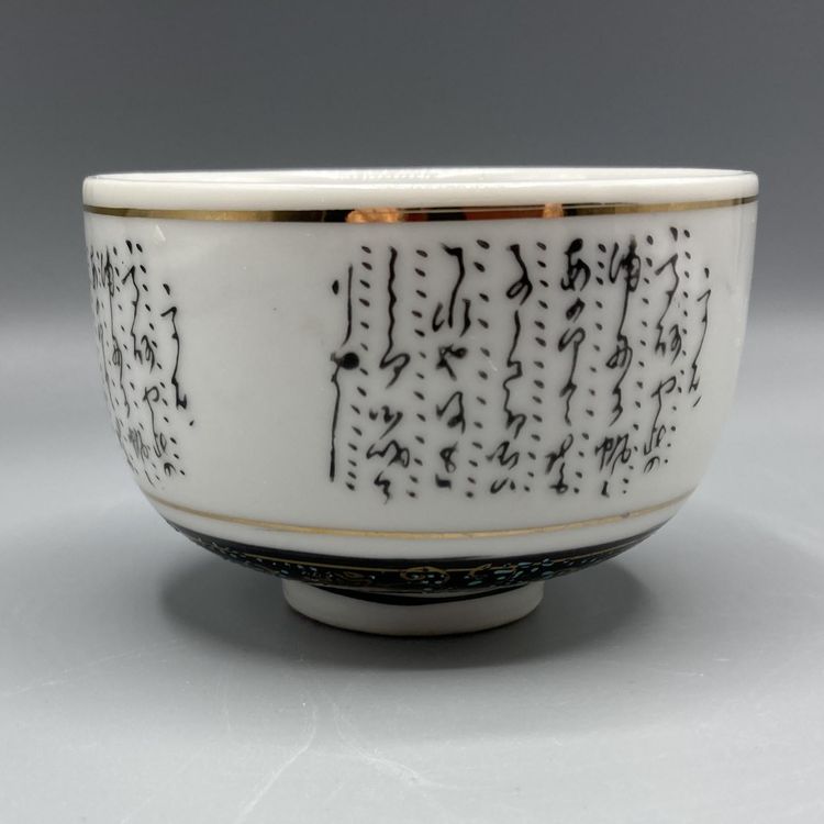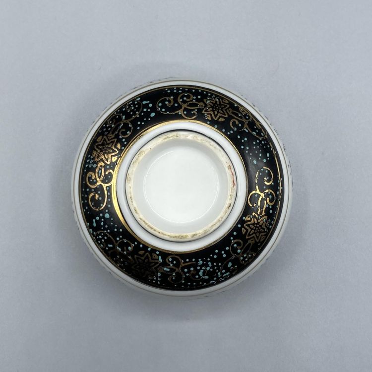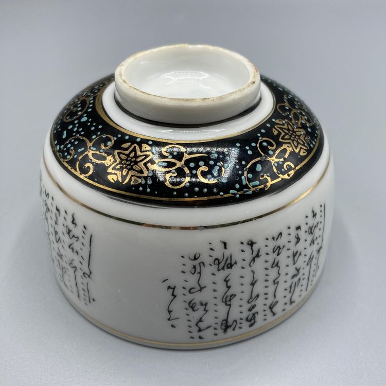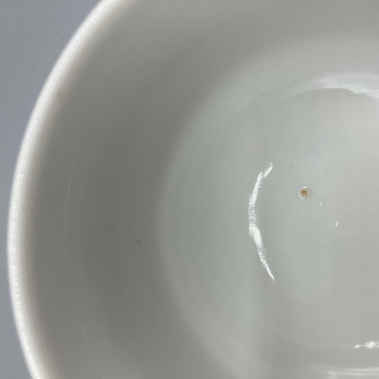 This tea cup is in good vintage condition. It does have a manufacturing defect on the inside of the cup where the glaze formed a little raised bump. It is clearly visible in the pictures. There is wear to the bottom of the cup as well. This cup measures approximately 3" across and 2" tall.