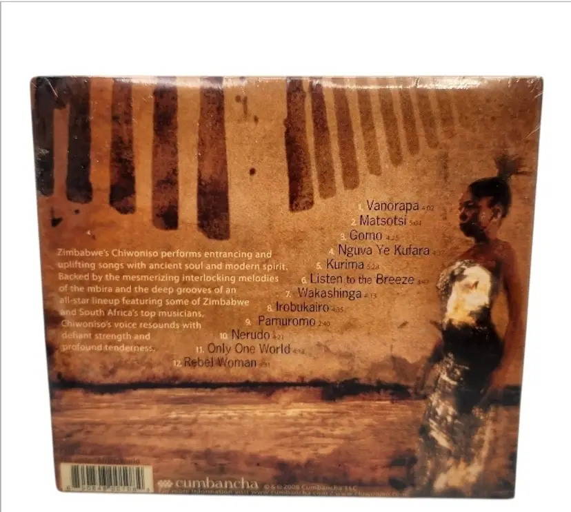 The product is a new CD called "Rebel Woman" by Chiwoniso, released by Cumbancha in 2008. It features a digipack packaging and falls under the genre of soul/R&B. The album showcases the artist's unique style and musical talent, making it a must-have for fans of soulful and empowering music. With its striking packaging and soulful sound, this CD is sure to be a standout addition to any music collection.