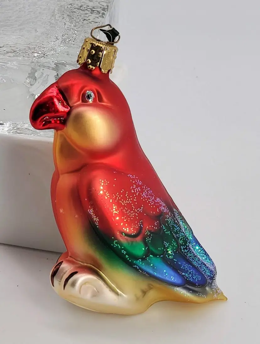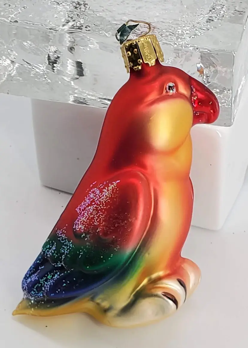 This colorful blown glass bird was made by the German company Christborn and is hand painted. This particular bird is now retired.