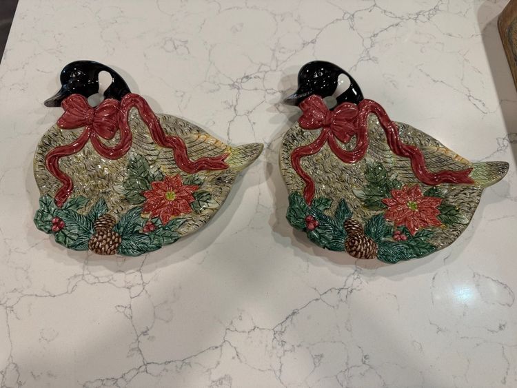 Lovely vintage Christmas plates dated 1997. Raised pattern, beautiful colors and no damage. Set of 2