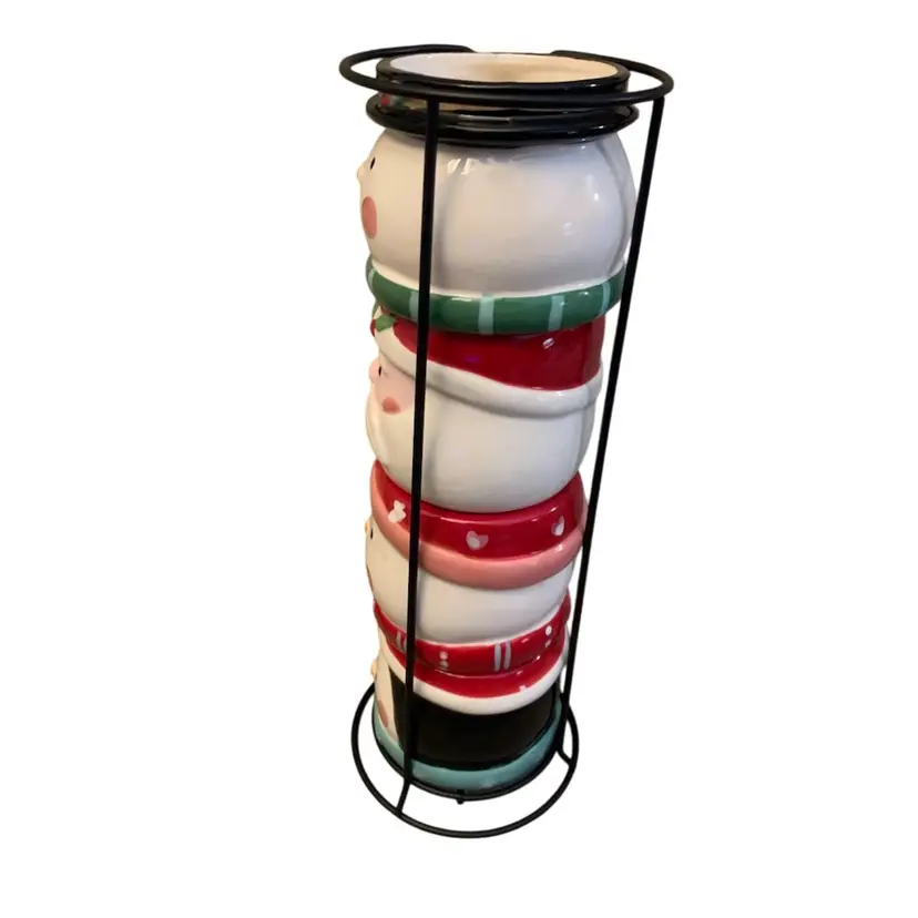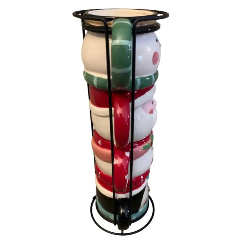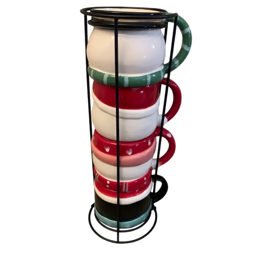 No chips or cracks, 4 mugs with holder. 13 x 4 1/8 mugs 5 X 3 3/4 X 3 1/4 inches