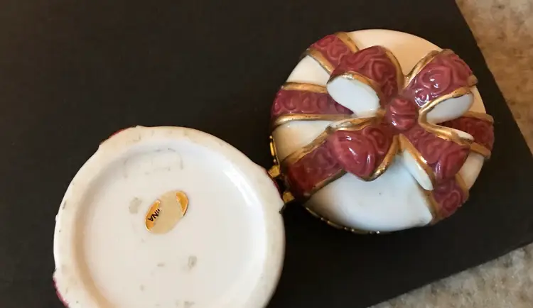 Big Bow Present Ceramic Hinged Trinket Round Ring Box