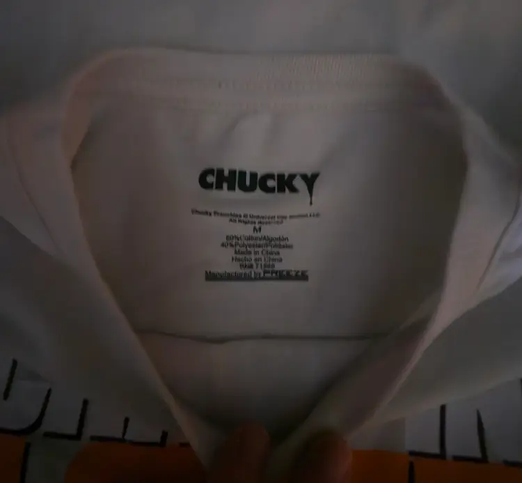 This Chucky Size Medium Women's T-Shirt is a colorful multicolor shirt perfect for the summer and spring seasons. The short-sleeve pullover design offers comfort and convenience, making it a great addition to any woman's wardrobe. With its eye-catching design and XL size, this T-shirt is sure to make a statement and provide a stylish and comfortable option for casual wear.
