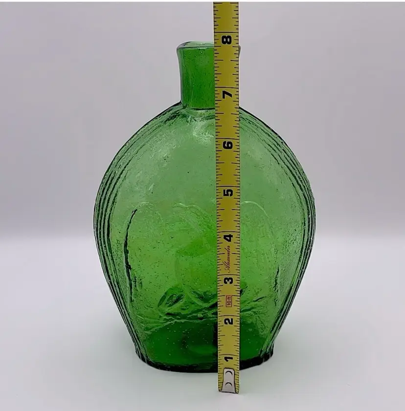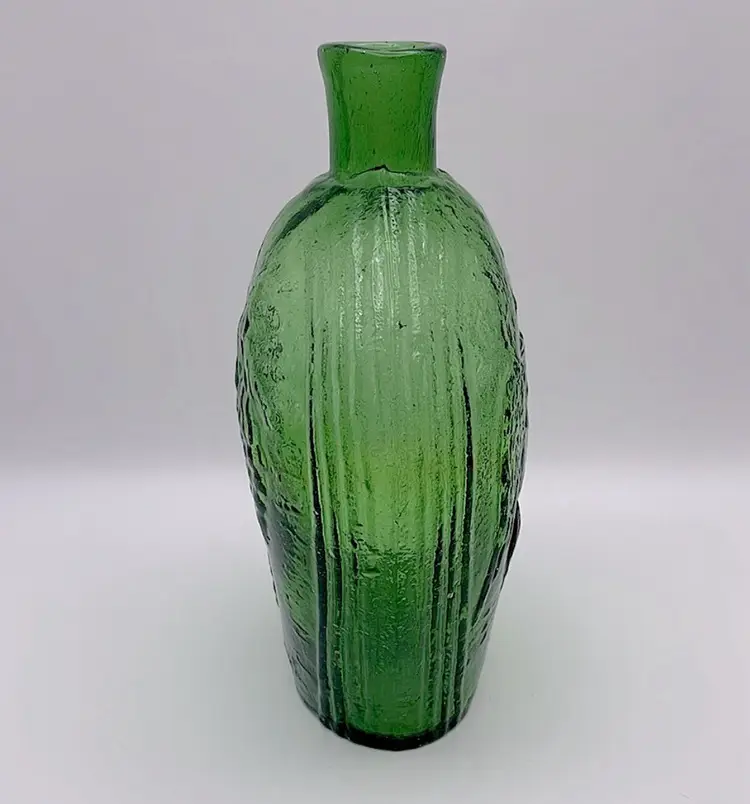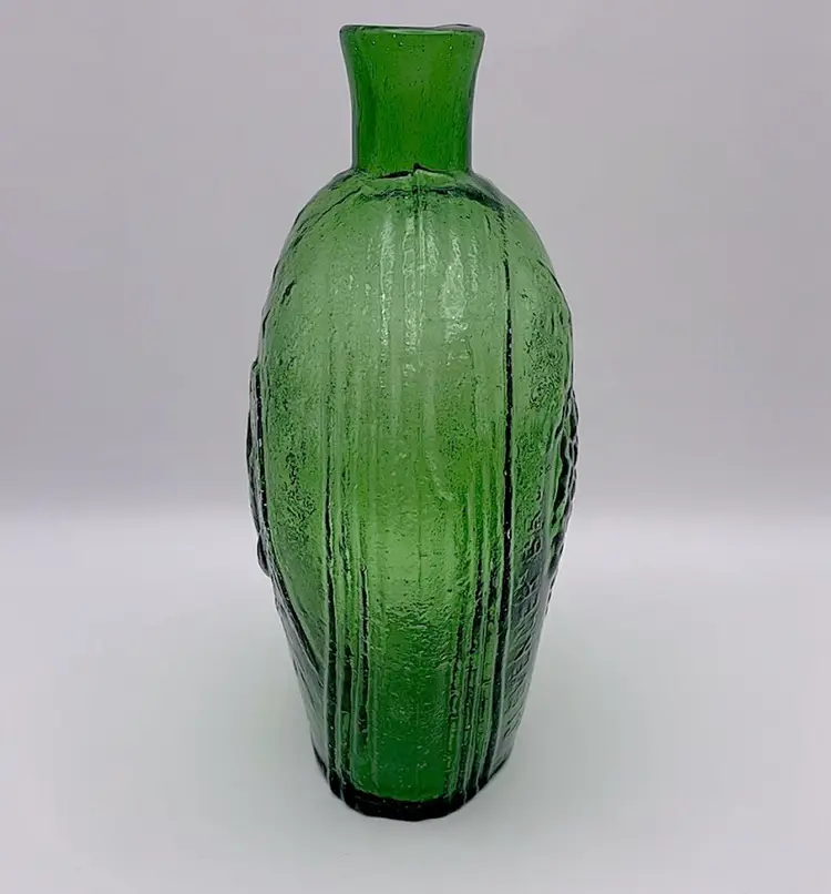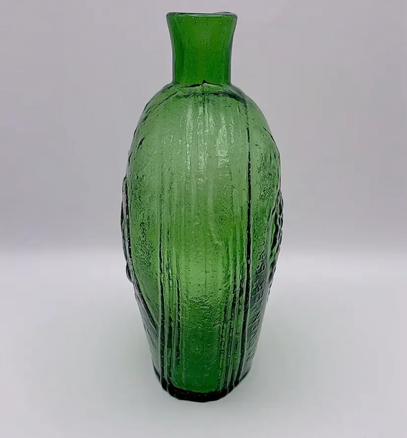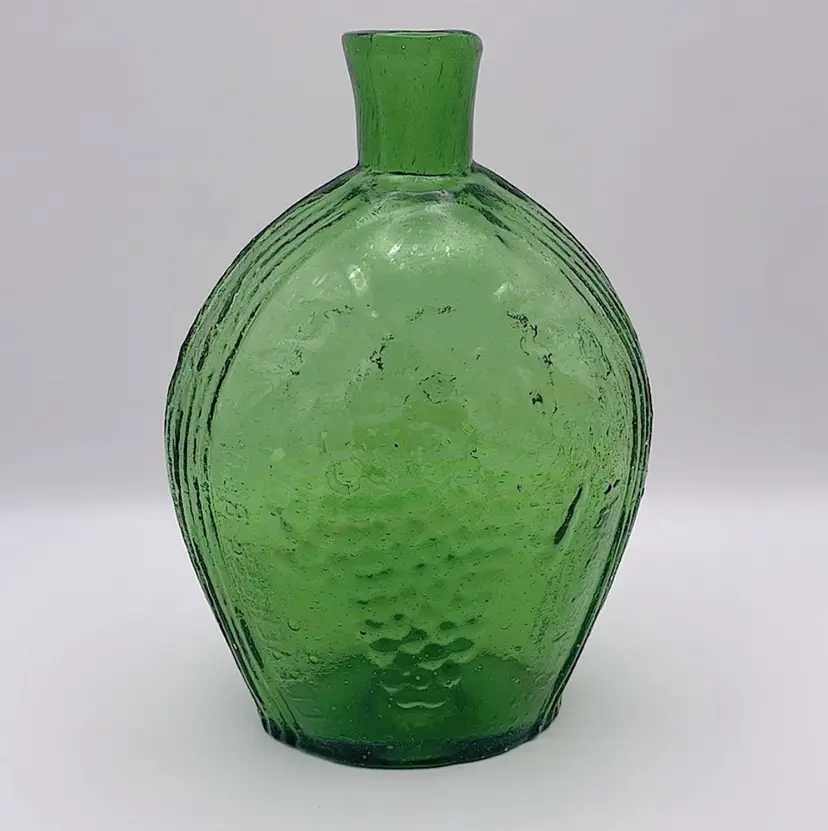 Clevenger Bros., Clayton, NJ, Green Glass Bottle with Eagle and Grapes, 7.75”