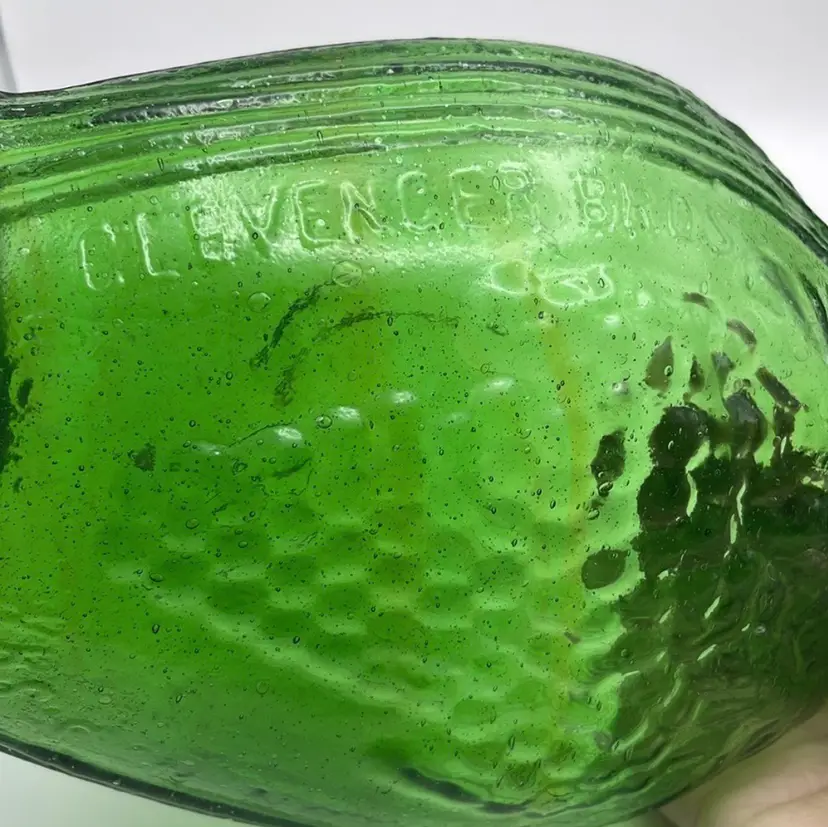 1930 - Clevenger Brothers Glass works was founded by Tom, Reno and Allie Clevenger. They constructed a small furnace in the stable of their backyard in Clayton, New Jersey. Their intent was to produce affordable reproductions of early American glass in the South Jersey tradition. Much of their early work was free blown except for some bottles and flasks. Each piece was hand blown and finished making no two exactly alike and each batch of glass often varied in color. The original, the Clevenger Brothers was the last green system glass blowing shop of its kind in America. The green system style of glass making is almost extinct in North America. Many of the workers were retired blowers, "old timers" who still wanted to be active in the industry.