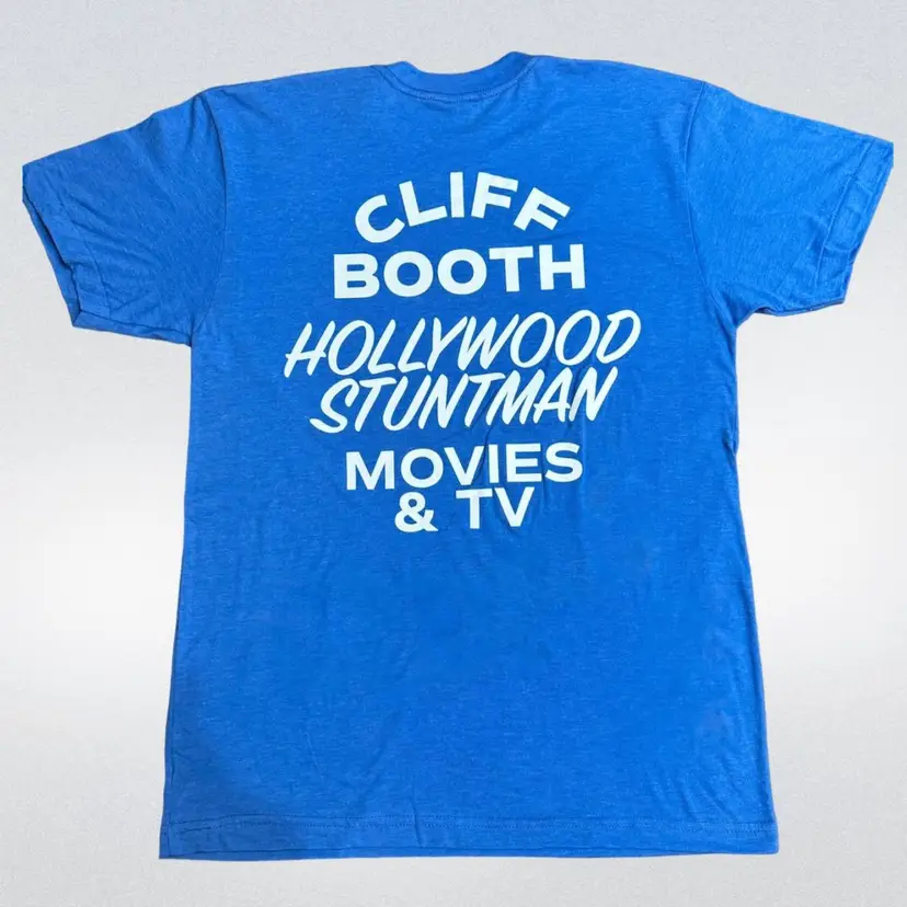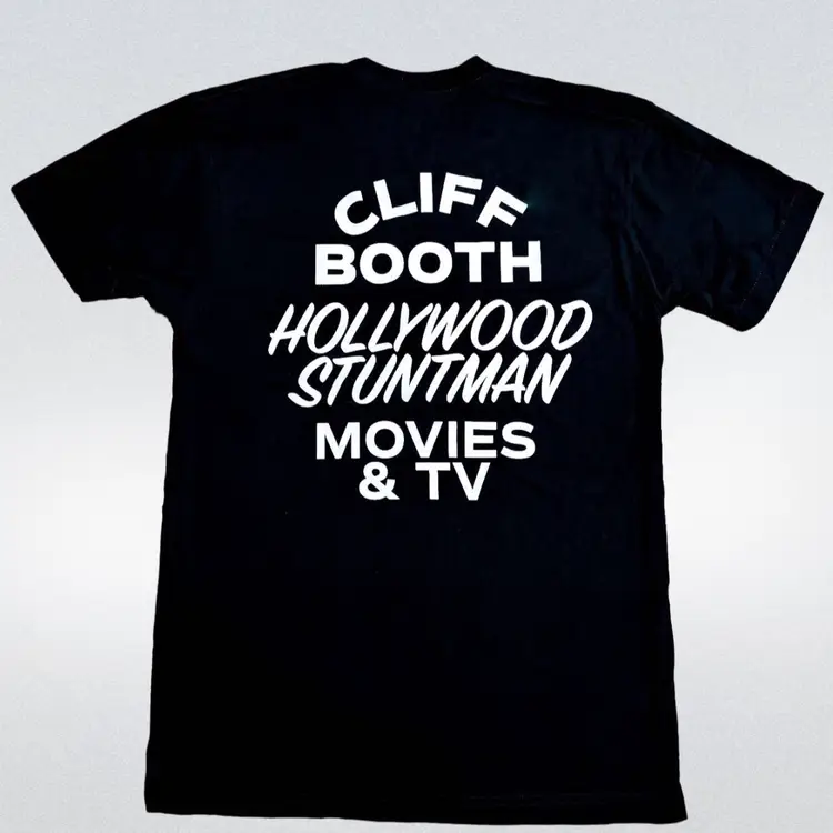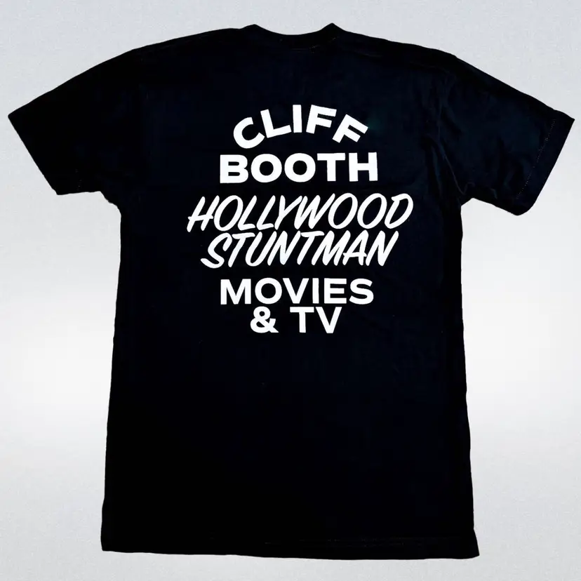 Your favorite stuntman from ONCE UPON A TIME IN HOLLYWOOD! New Beverly Cinema on the front & Cliff Booth Hollywood Movies & TV on the back. Available in black and blue (limited sizes).