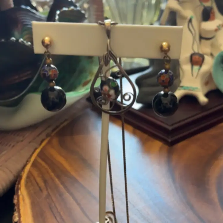 Cloisonné Earring And Necklace Set 925 Tested