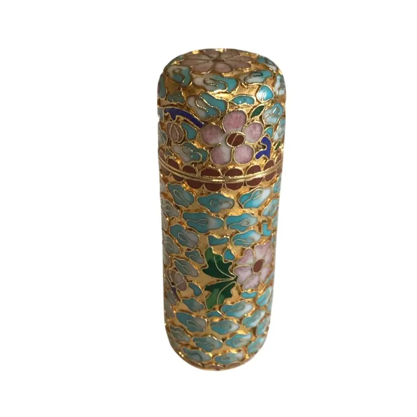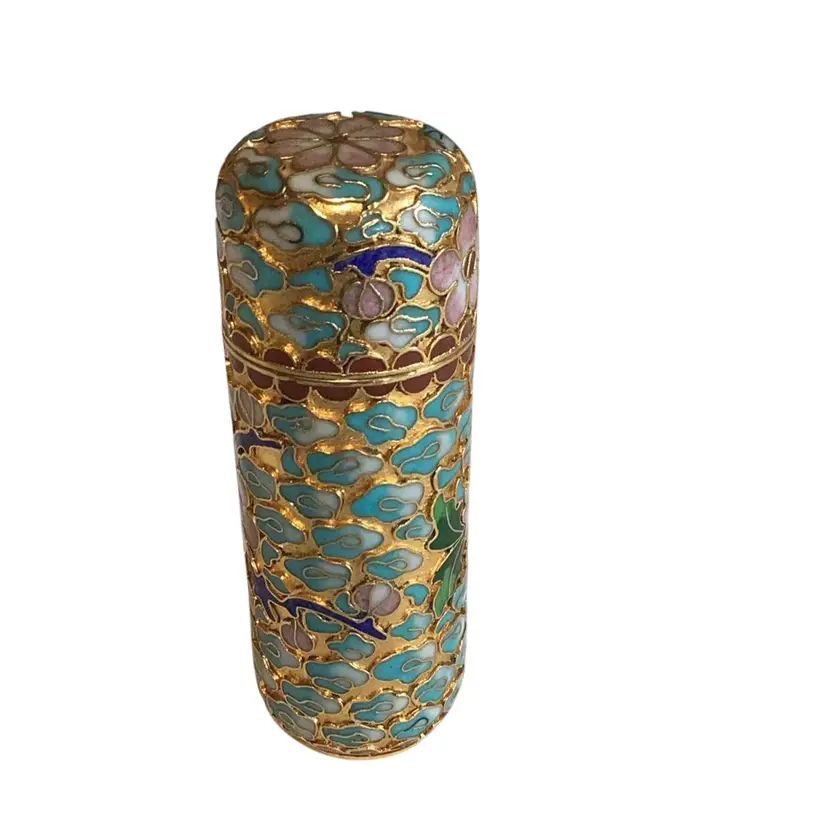 Cloisonné Floral Container Lidded 4” Tall X 2” Wide