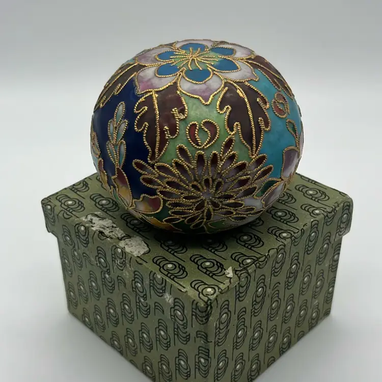 Cloisonné Floral Designs Paperweight w/ Box | 3”