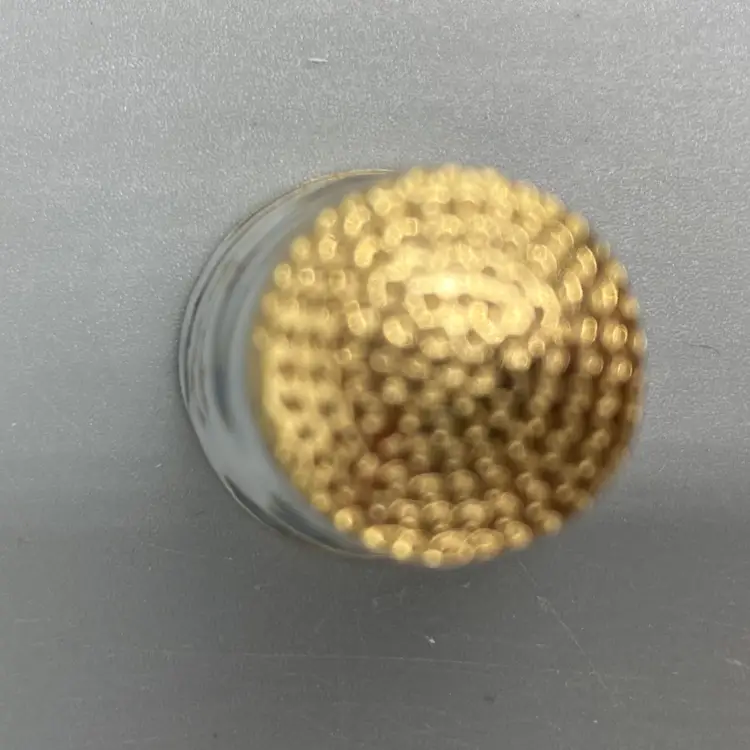 This thimble is in good condition. It measures approximately 1" tall x 3/4 across the base.