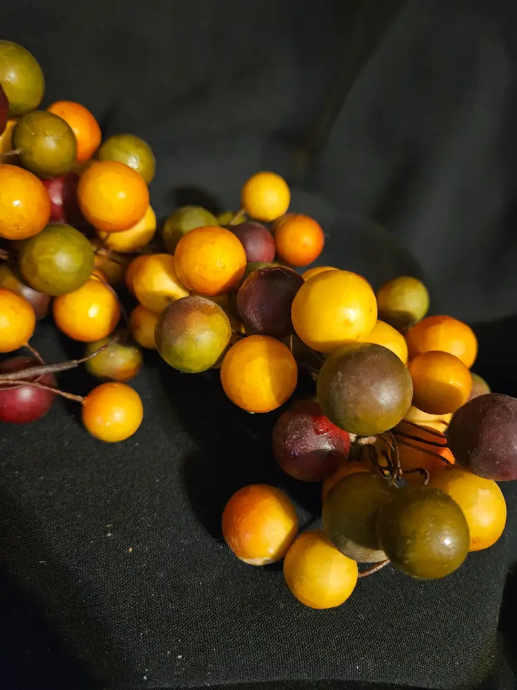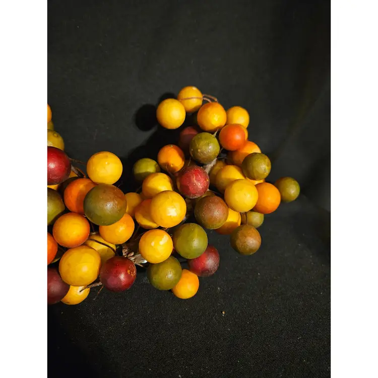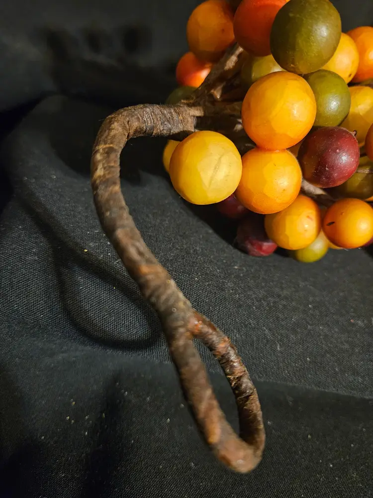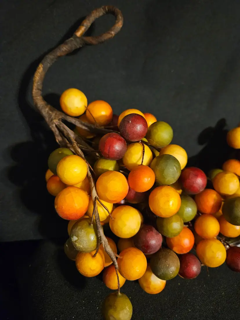 Nice cluster with a few small extra pieces. I am not 100% sure they are papier mâché, but they are super light, and they resemble pieces I have made in the past. Fruit is in very good condition.