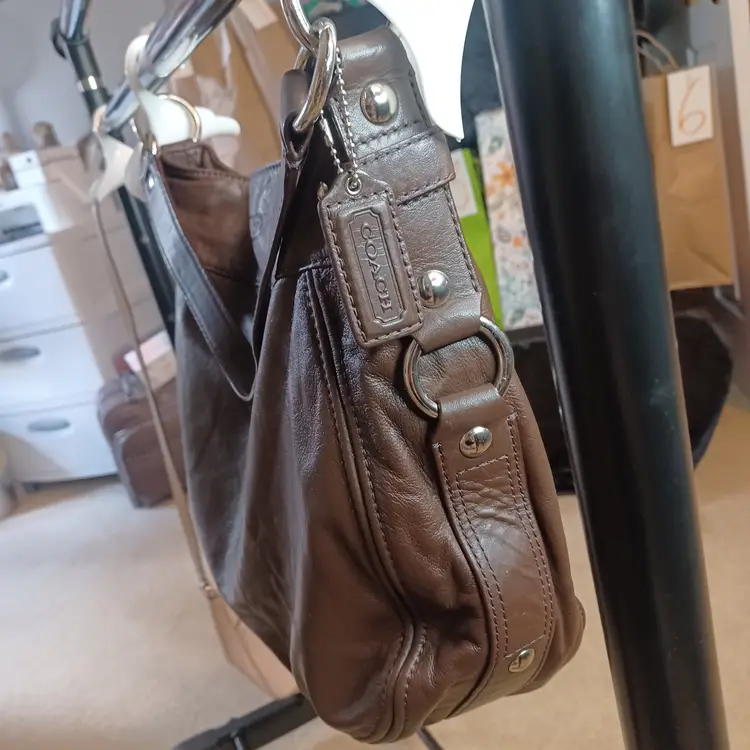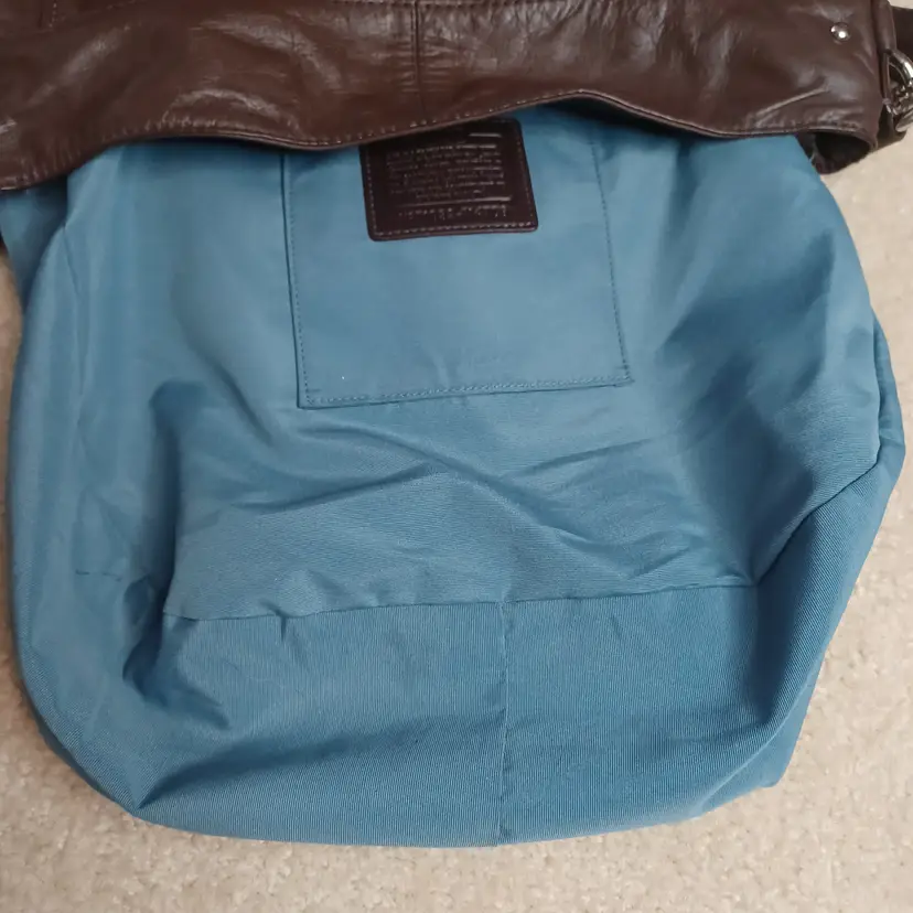 2010 Coach Zoe Hobo smooth brown leather. Hangtag present, zipper close with leather zipper pull. 12x15x5 with a 9" drop. Silver tone accents. Aqua interior. EUC!!!