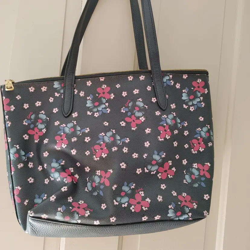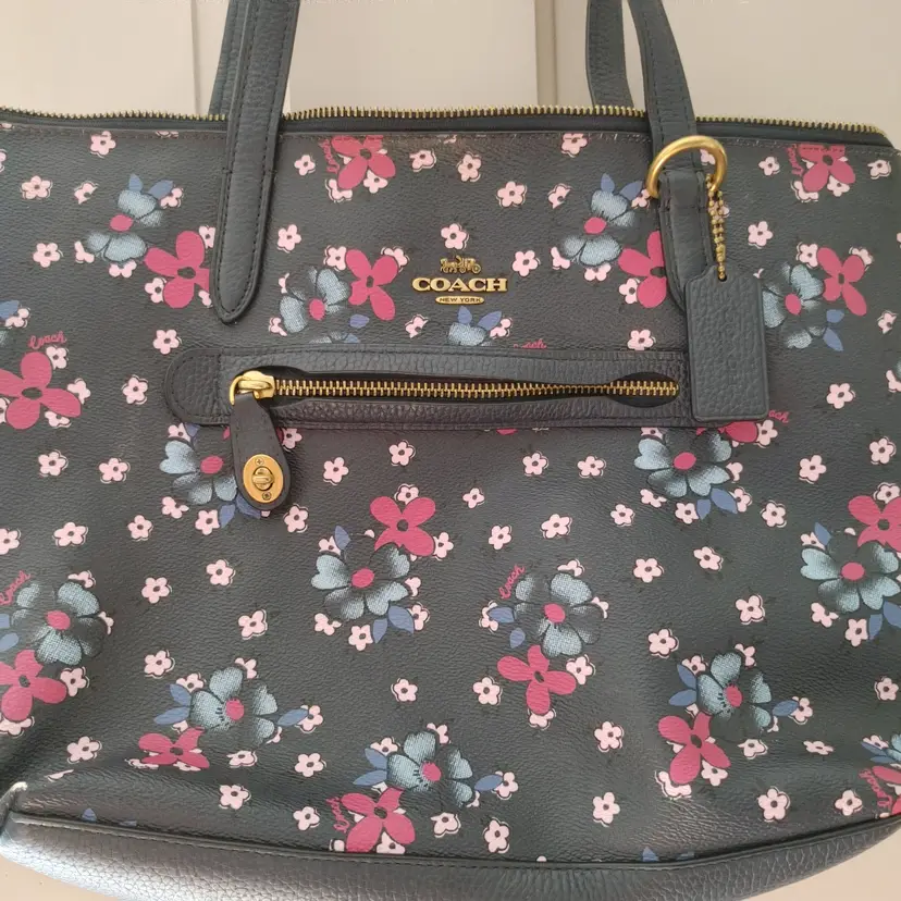 Coach Navy Floral bag. Creed: C2079-1046. Outside of the purse is like new. Inside has some marks. Dimensions: W 15, H 10.5, D 5.