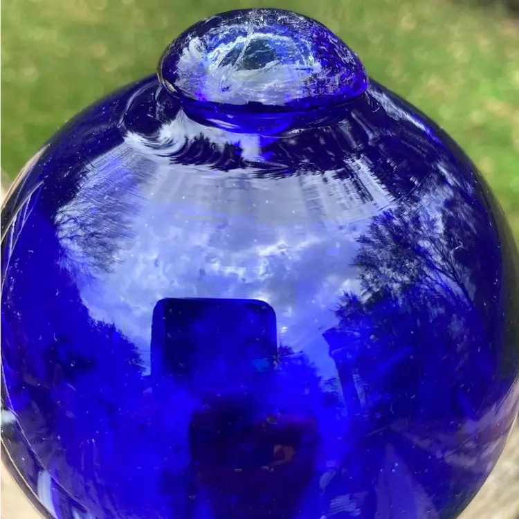 Approx: 13” circumference including pontil. Bubbles in glass. Smooth and flattened pontil. No signature. See images as part of description. Candle holder not included.