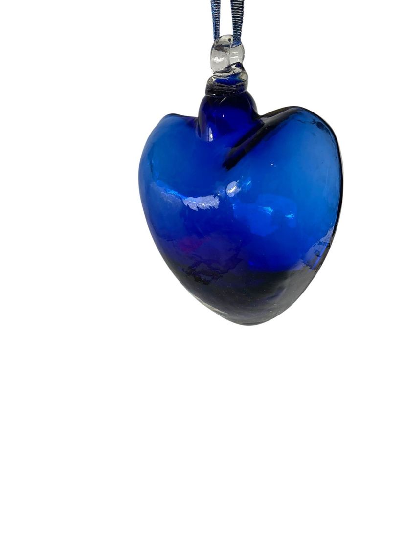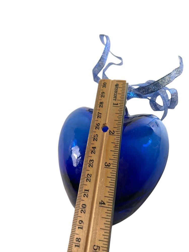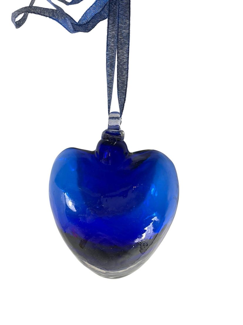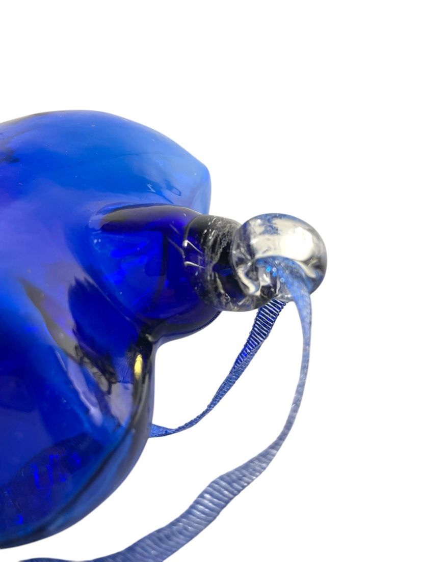 Weight 9.8 oz. Length 5”, width 4” x 2”. Attached ribbon for hanging. Hand blown. No chips or cracks.