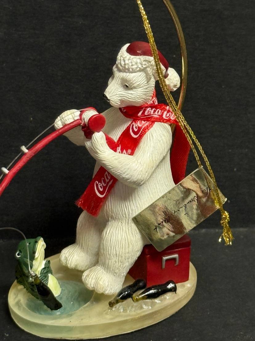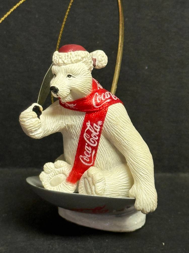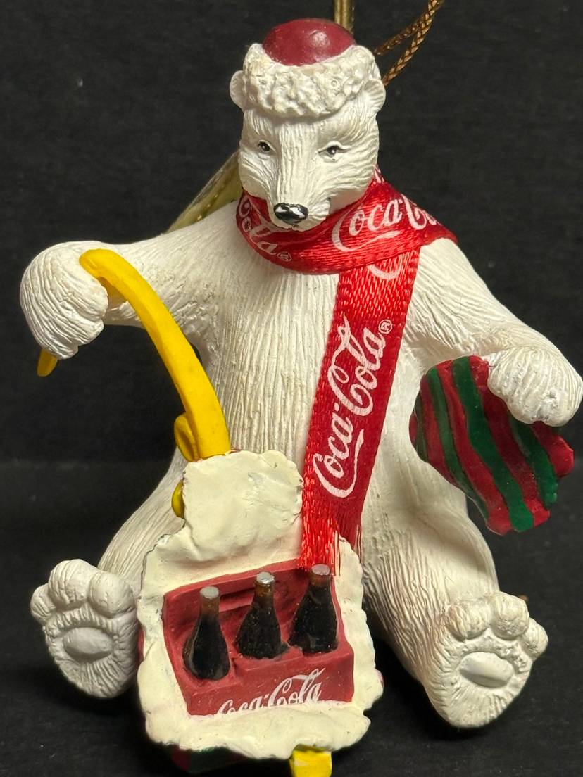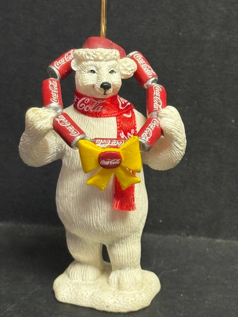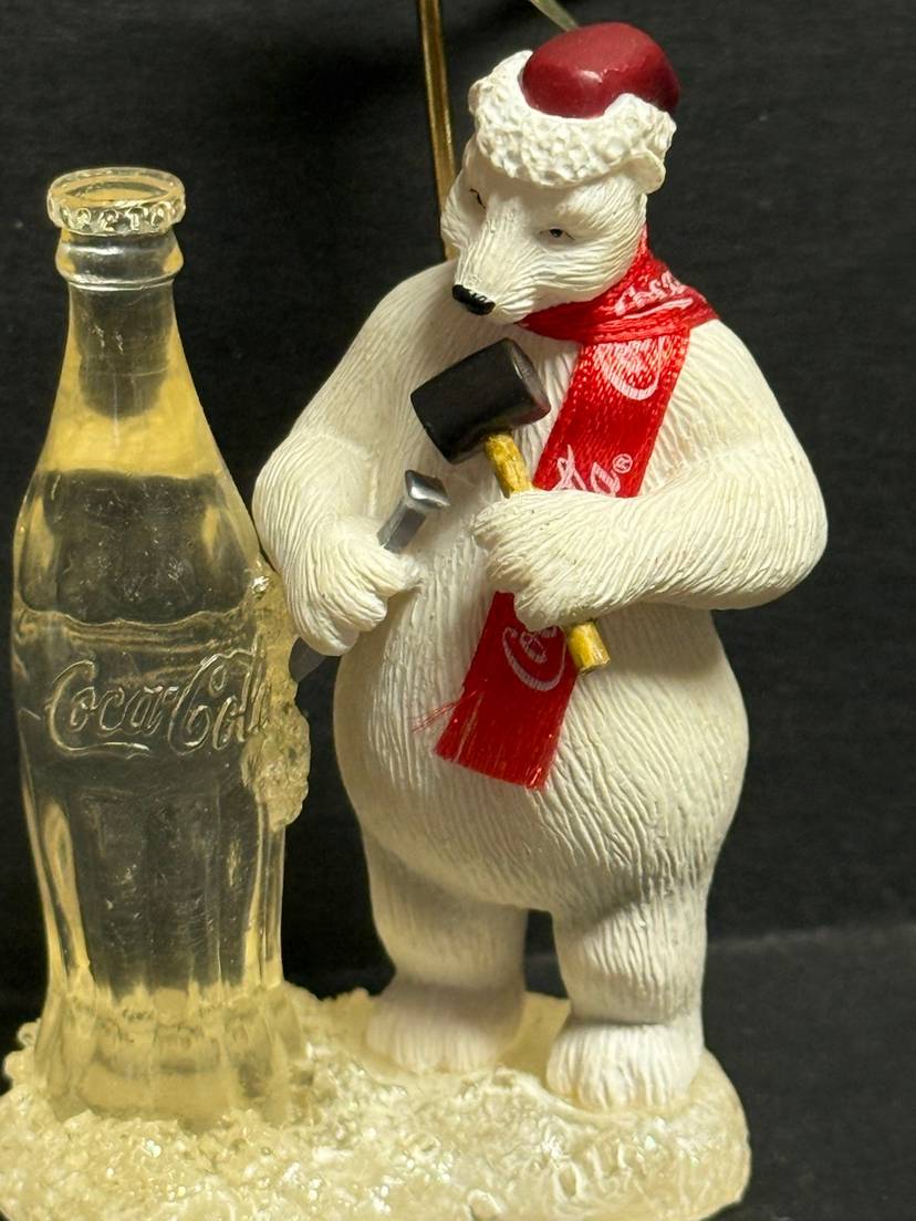 1995+ Coca Cola The figurines are Coca Cola bears collector, ornaments distributed by Enesco Used but never used Just stored away. Approx 3 inches in height.