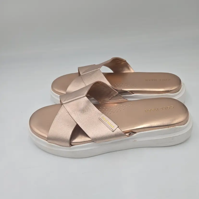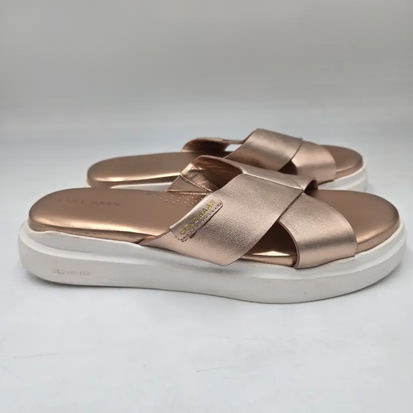 Cole Haan Women's Grandpro Rally Criss Cross Slide Sandals 8 Rose Gold Comfort