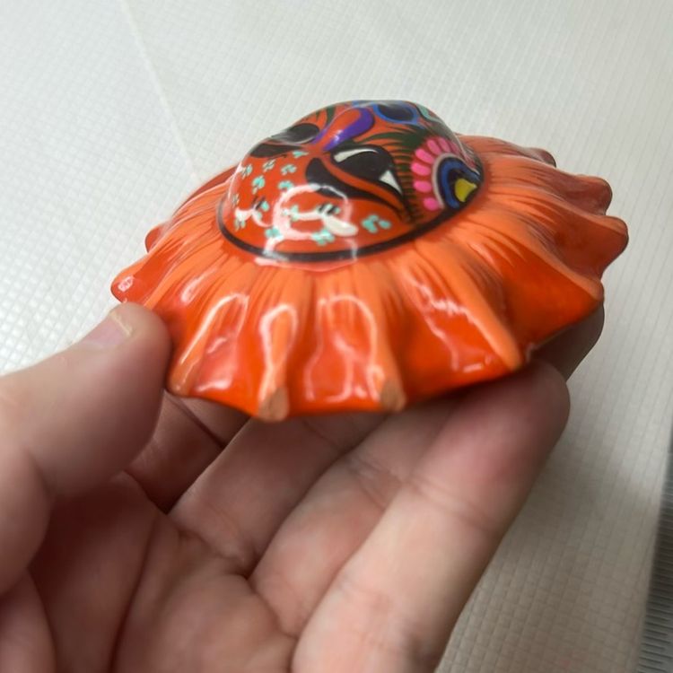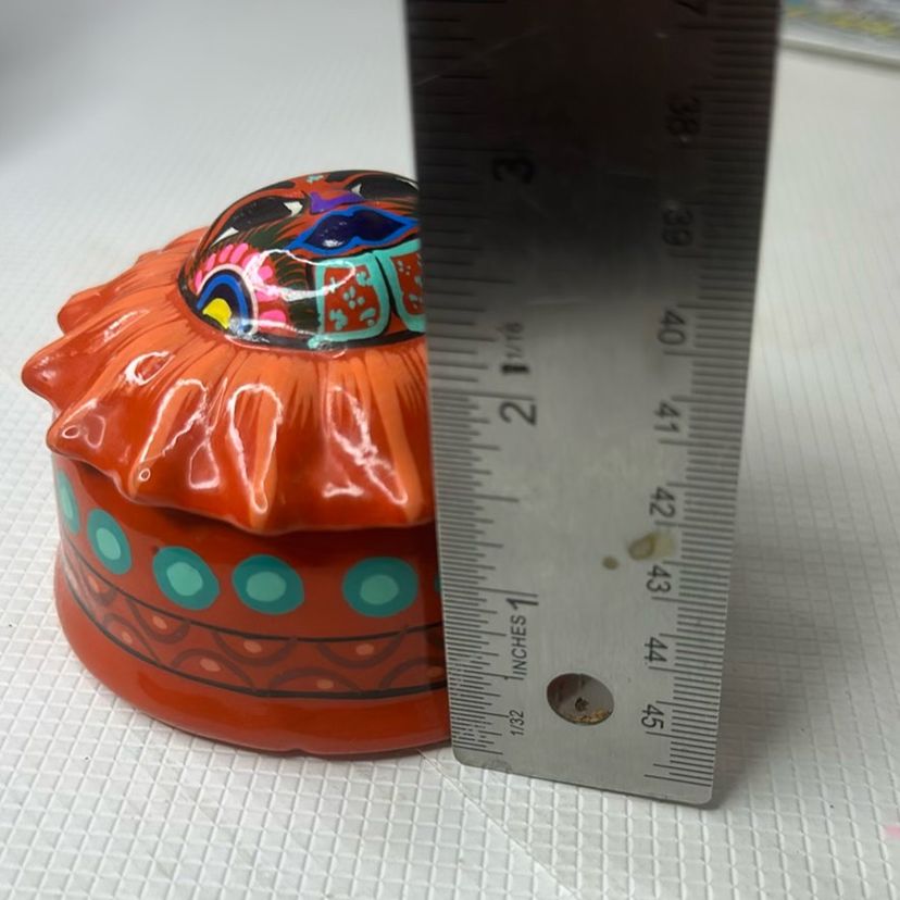 Measures 2.3” tall and there are some chipps on it as is