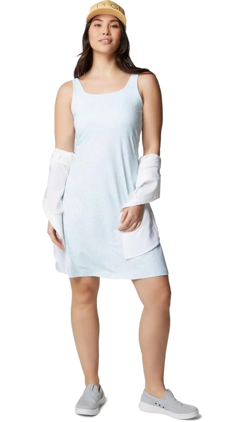 This sleeveless, mid-length dress is perfect for staying dry and cool in hot summer weather. And with UPF 50 sun protection, it's great for slipping on over a swimsuit on your way to the beach.