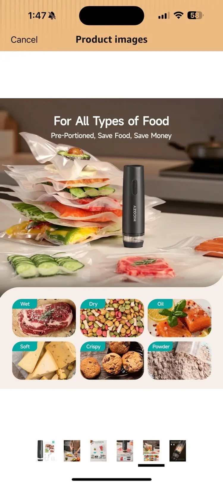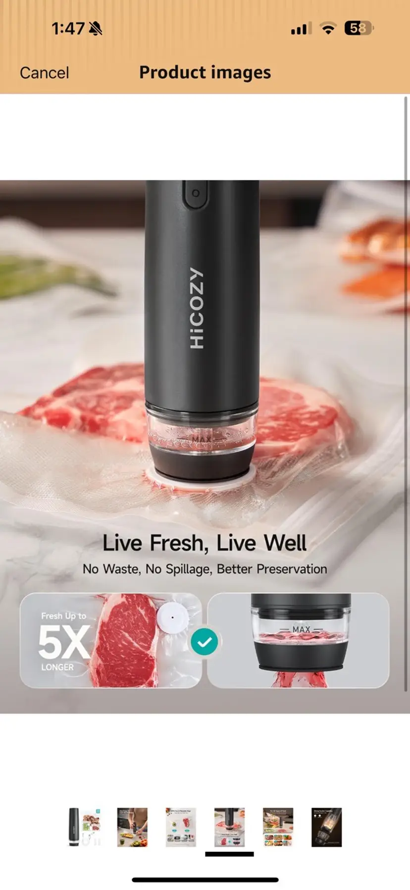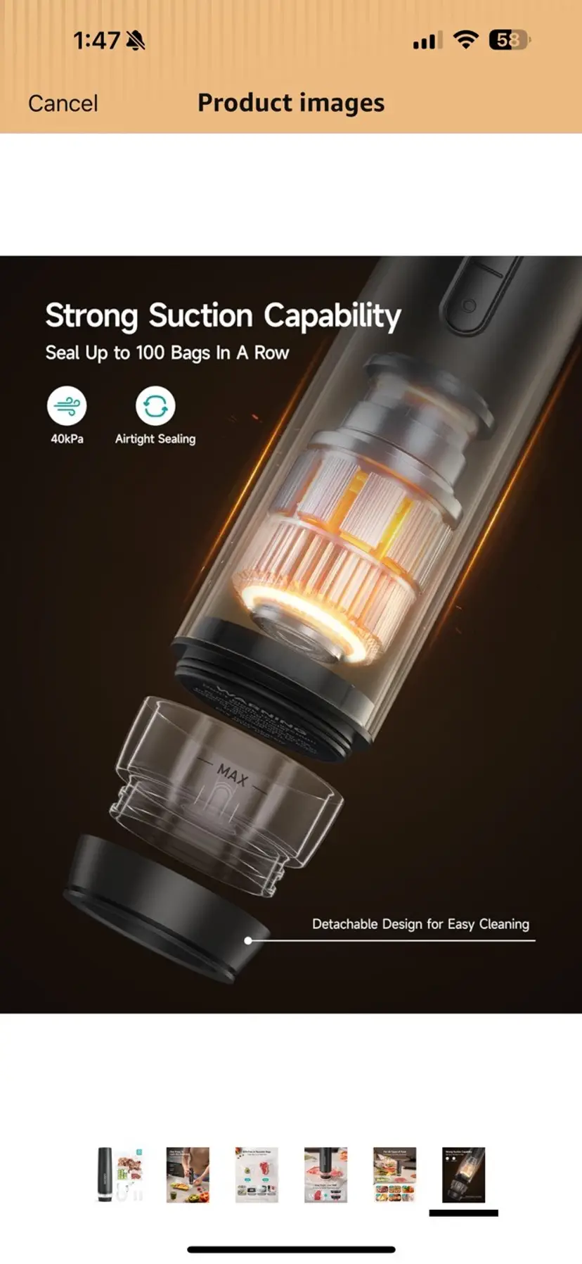 Powerful Suction & Long Endurance: With a powerful suction, this compact vacuum sealer machine provides airtight vacuuming performance using HiCOZY bags. Once fully charged, it can vacuum up to 100 bags, offering an impressive 60-minute runtime.