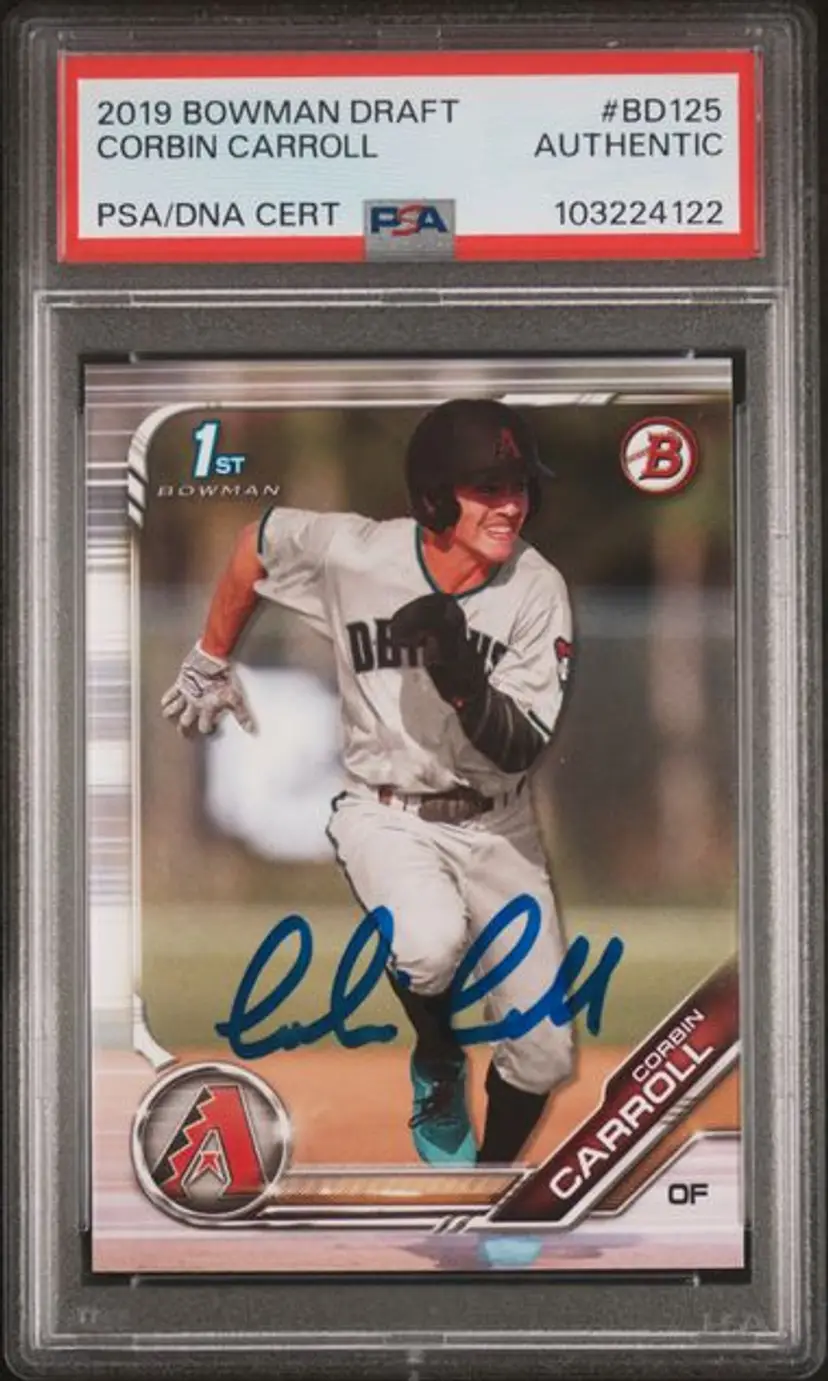 Snag this Corbin Carroll card from the 2019 Bowman Draft series, featuring his autograph and authenticated by PSA/DNA.