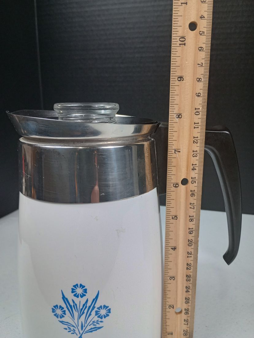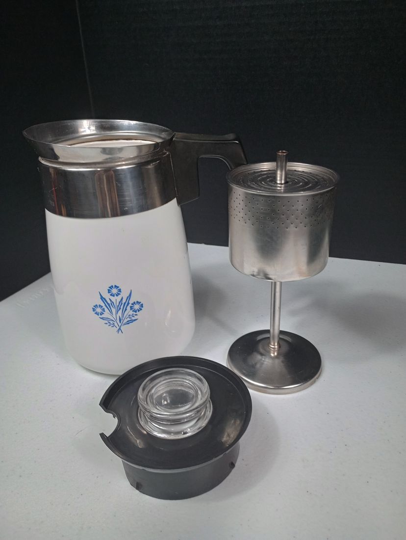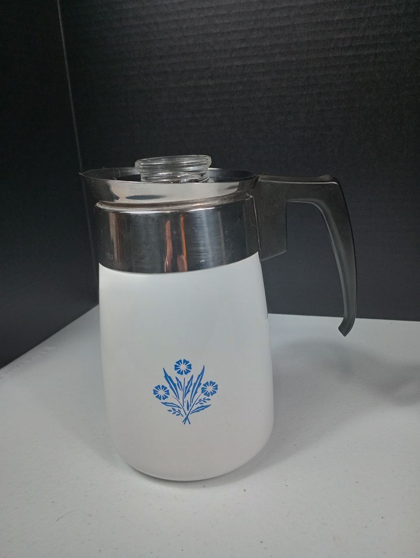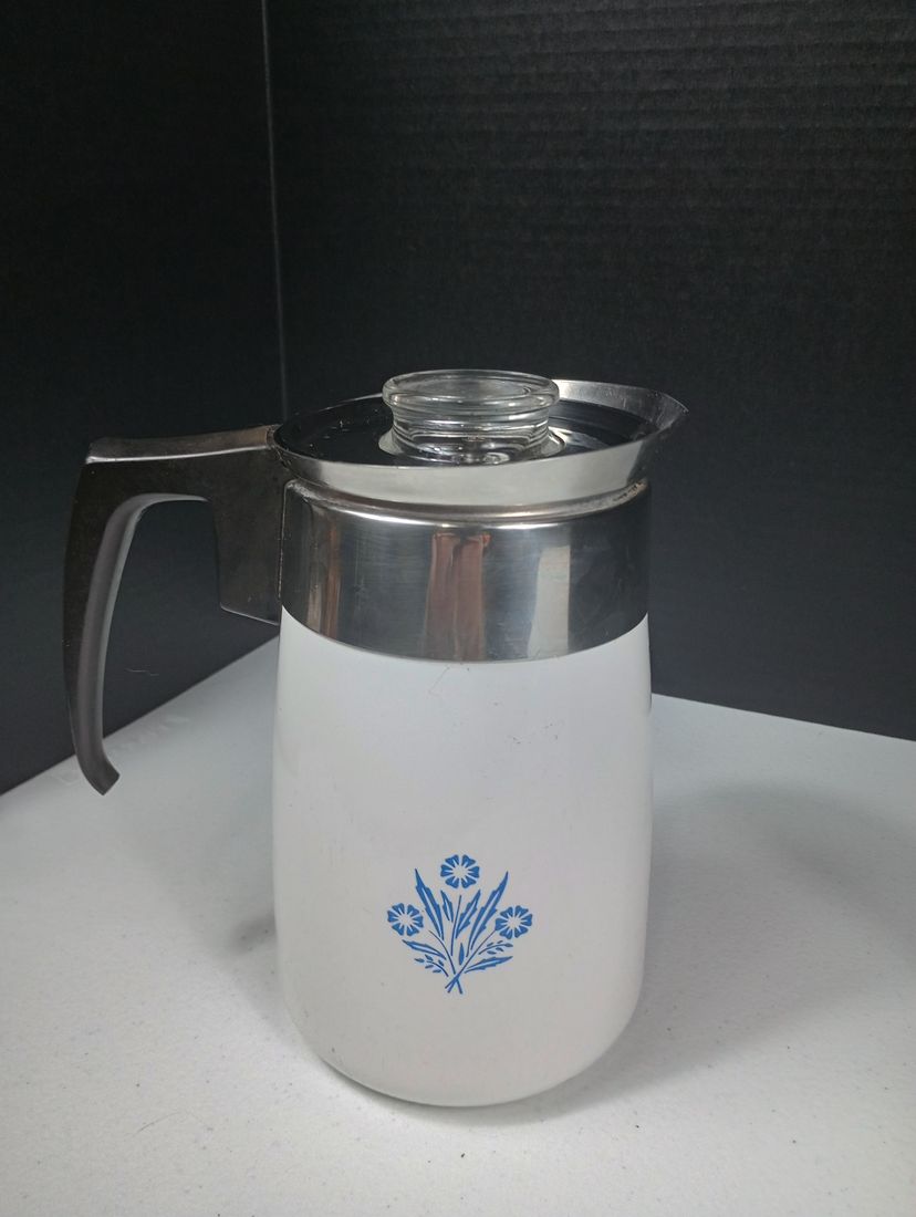 Nothing beats a fresh cup of Joe! Enjoy one from this nifty vintage piece Featured here is the 8 Cup Blue Cornflower stovetop percolating coffee pot