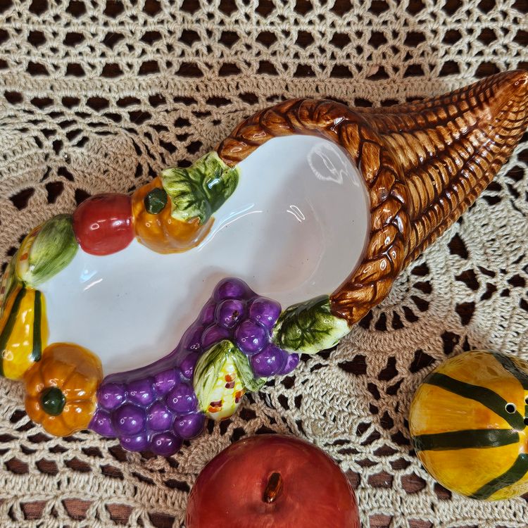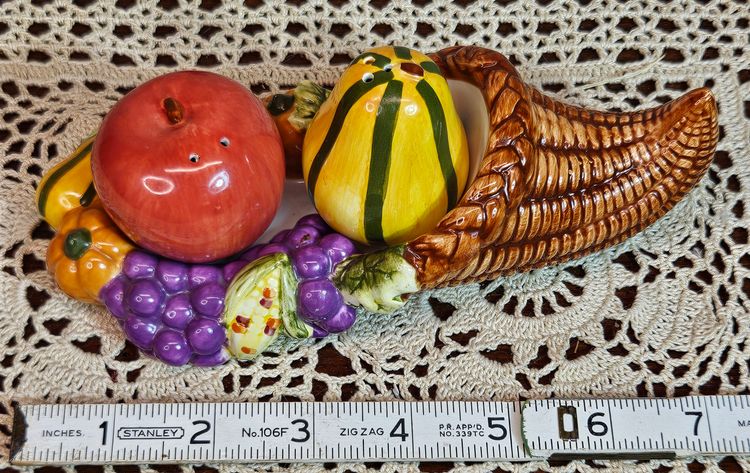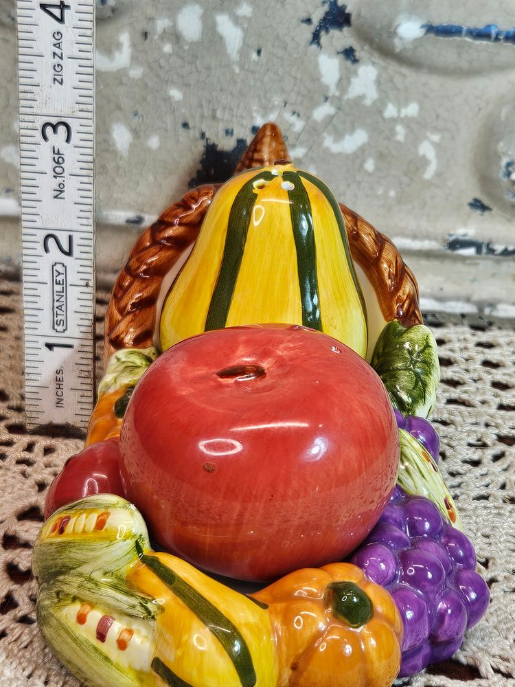 This festive Thanksgiving themed salt & pepper shaker set is in excellent, used condition, with no appreciable chips, scratches or cracks. Measurements are depicted in the pictures of the item or listed in the description of the item. Please review the photos, as they are part of the item description. Please note that any props used in the photos are not included in the purchase, unless otherwise indicated.