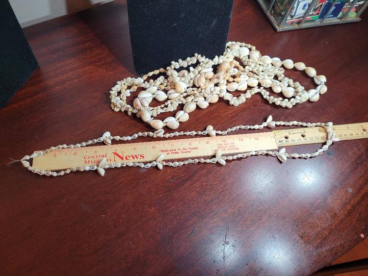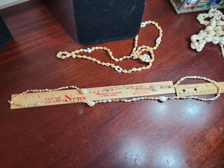I have another 5 mixed SHELL necklaces about 32 inches long, no clasp, over the head style. Each one is different with some using big shells and others using tiny ones. And SEVERAL have a mix of big and small. These are fun and great. I have a couple of lots of them so check them out.