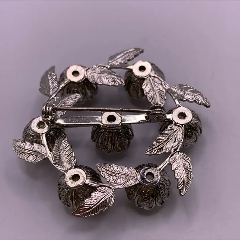 Cracked Marble Circle Leaf Brooch Riveted 1 3/4” Wide