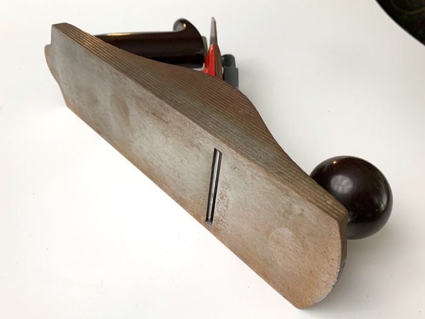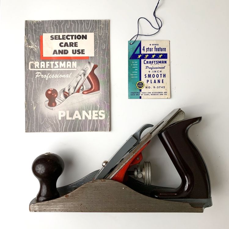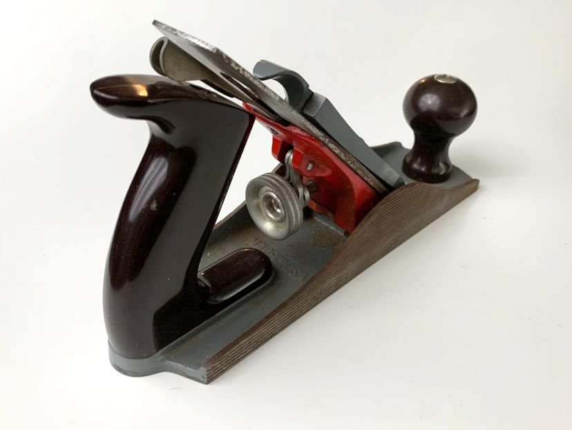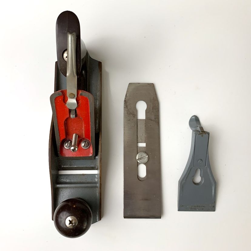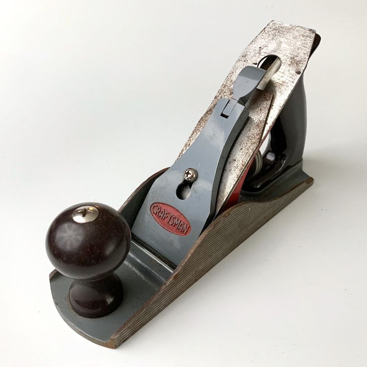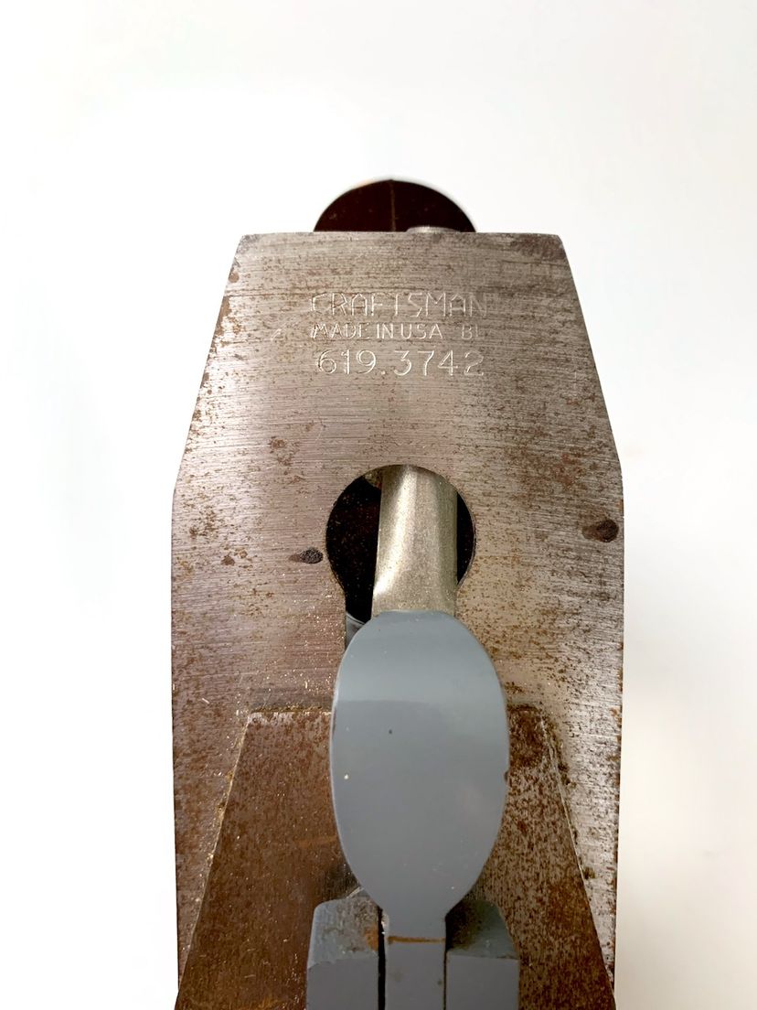 Craftsman 619.3742 type 21, a Sargent knockoff of the Stanley #4 produced between 1964 and 1969. It bears a resemblance to the Stanley Handyman series, but unlike those, does have a machined frog/bed interface. Steel adjustment knob, stamped lateral adjuster, Bakelite knob and tote. Phillips fasteners except for the frog screws, which are slotted.