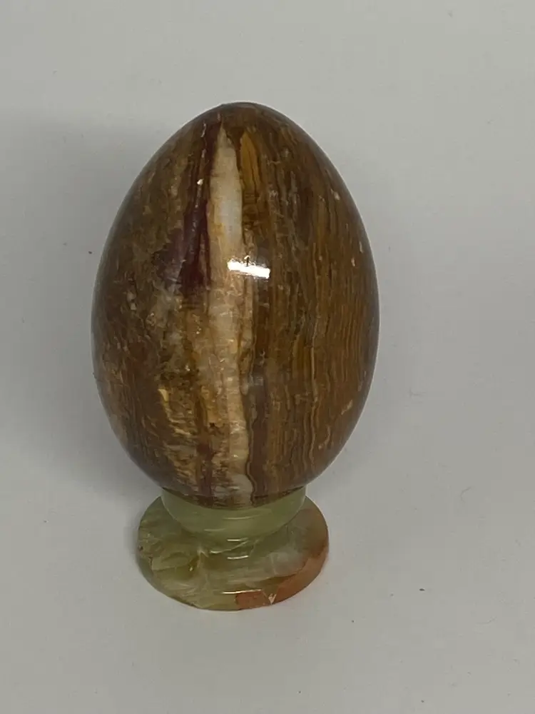 Crazy Lace Agate Egg on a Small Stand, aka Laughter Stone