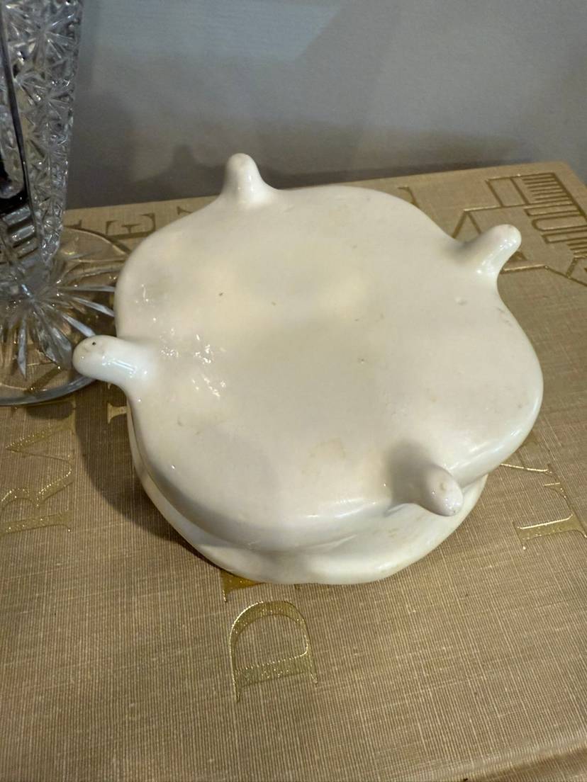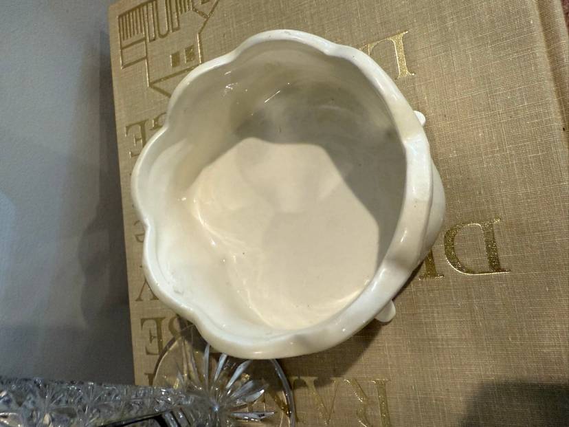 Pottery Bowl, Cream Colored, Footed, Scalloped Edges. This charming basin-style bowl is perfect for adding a touch of vintage elegance to any home decor. Made from quality pottery, it features a beautiful cream hue and distinctive scalloped edges that rest on small feet. Ideal as a decorative centerpiece, a catch-all, or a unique planter.