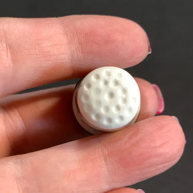 This is in beautiful condition. No chips or cracks. Measures 3/4 inch wide and 1 inch tall. Weighs 1 ounce. If the actual postage ends up being less than what you paid, you will be refunded for anything over one dollar.