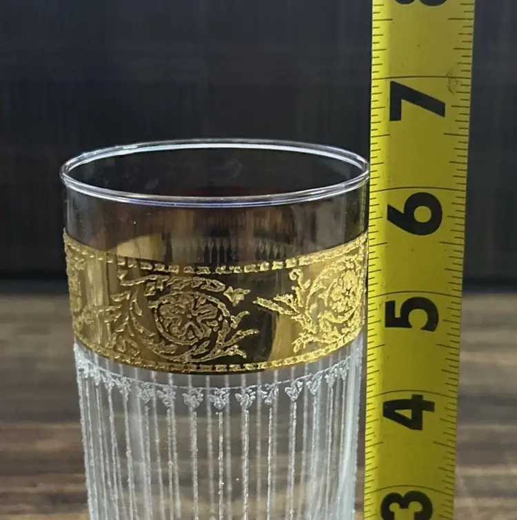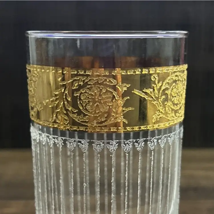 Used. An item that has been used previously. The item may have some signs of cosmetic wear, but is fully operational and functions as intended. This item may be a floor model or store return that has been used. See the seller’s listing for full details and description of any imperfections. See all item conditions. Beautiful set of 5 vintage Culver “Tyrol” highball glasses, featuring elegant 22-karat gold etched detailing with a refined vertical pattern and ornate floral band. These classic Mid-Century Modern glasses are perfect for a retro bar setup, cocktail entertaining, or display in a vintage glassware collection.