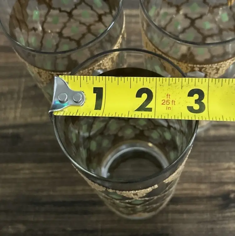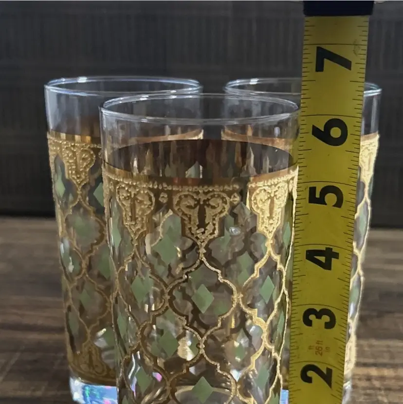 Stunning vintage Culver “Valencia” highball glass featuring the iconic 22-karat gold Moroccan lattice design with olive-green diamond insets. This Mid-Century Modern classic embodies Culver’s signature luxury and craftsmanship — perfect for cocktails, display, or completing your vintage barware collection.