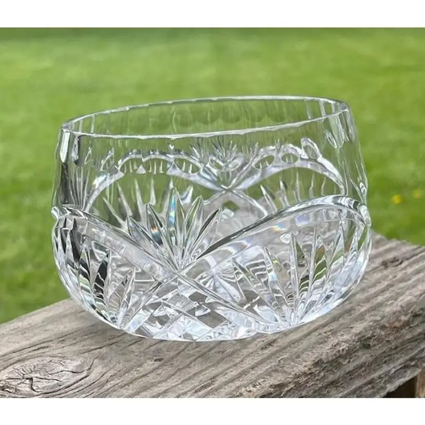 A beautiful cut glass candy dish. It is approximately 3" Tall and 5" Wide. The size makes it nice for dips, veggies, etc. for your celebration. It also is a nice gift with candy added to it. It also would make a nice gift. Free of any damage.