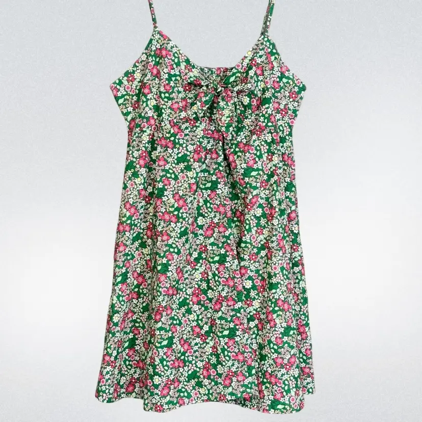 Retro Groovy Ditsy Floral Tie Front Beach Dress Cover Up Sz XL