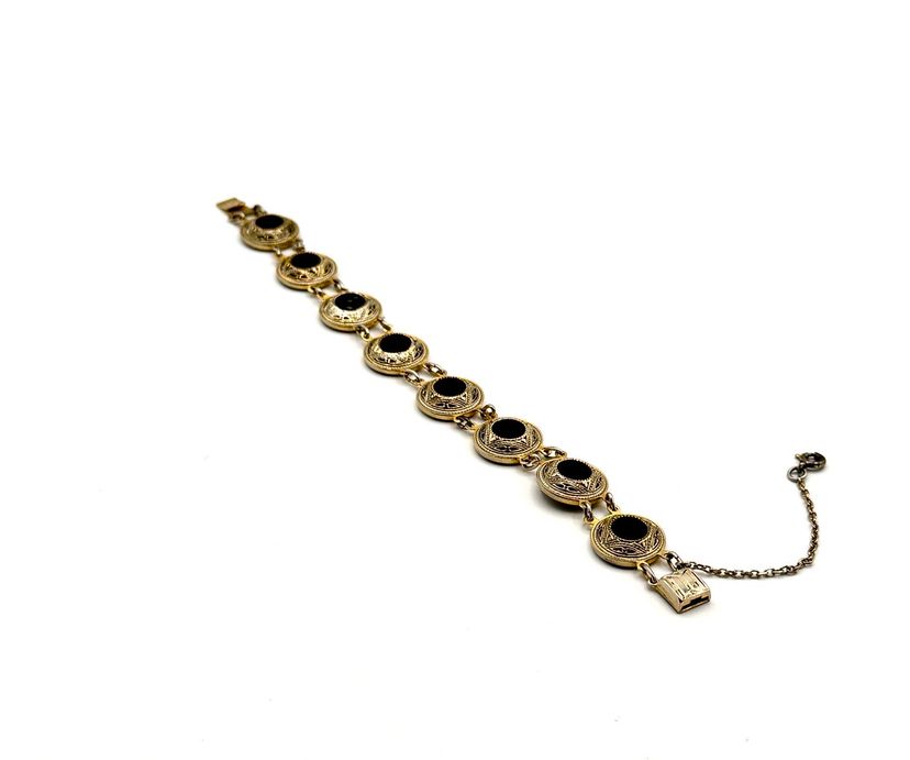 Damascene Bracelet With Chain Guard And Black Gemstone 7”