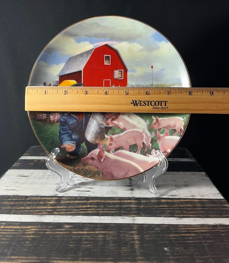#1543. Adorable Danbury Mint 8” Little Farmhands Collector Plate- “Piglet Roundup”signed by Donald Zolan and numbered L830. I HAVE 4 DIFFERENT PLATES LISTED, IF INTERESTED IN ALL, MESSAGE ME!