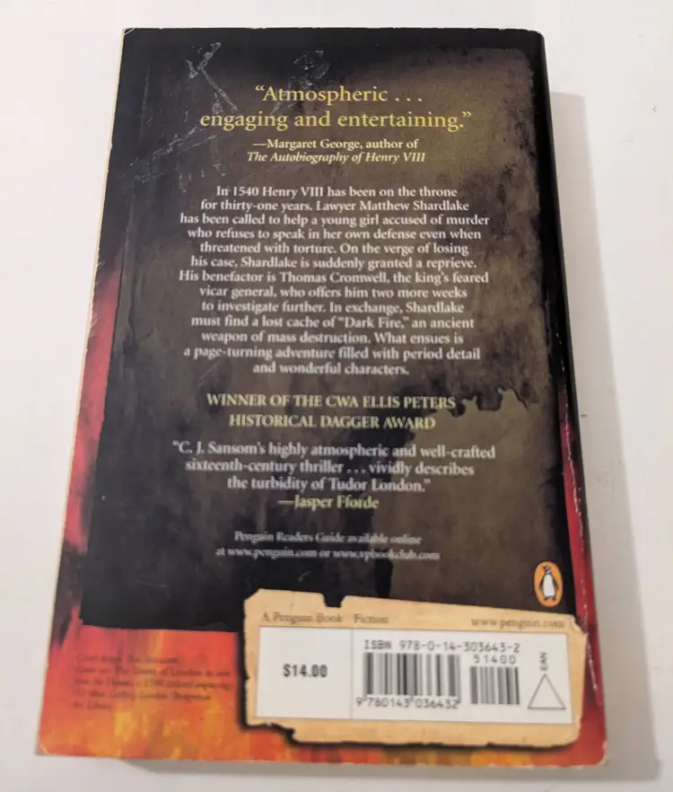 Dark Fire - C.J Sansom 1540: A city in the grip of a heatwave. A lawyer in the grip of a conspiracy.
