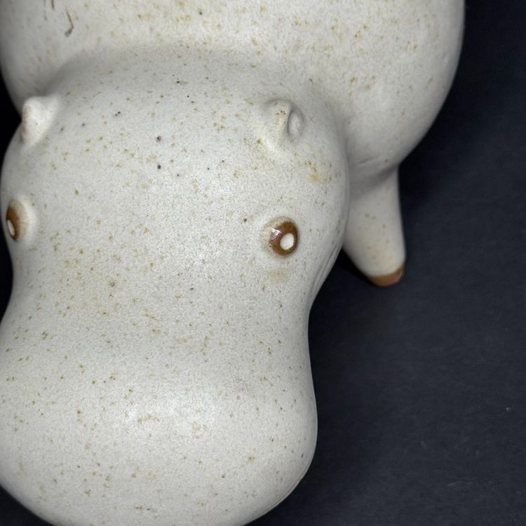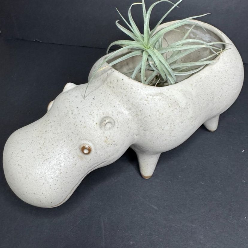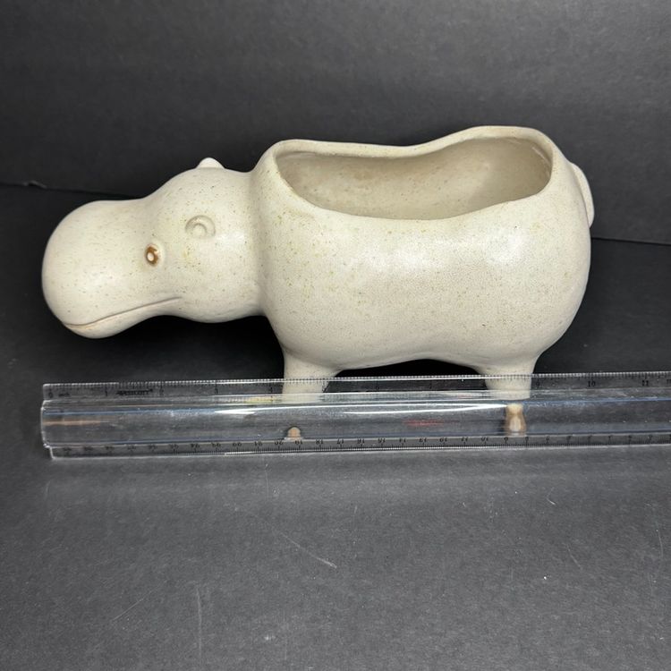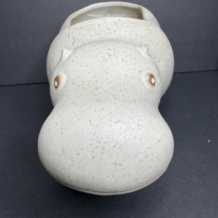 David Stewart is a well known California potter who created many unique animal figurines/planters/containers. This cute hippo is in great condition measuring 10 1/2" x 5 1/2" x 5". He is a big fella and could easily be used for a house plant. He has no chips or cracks.