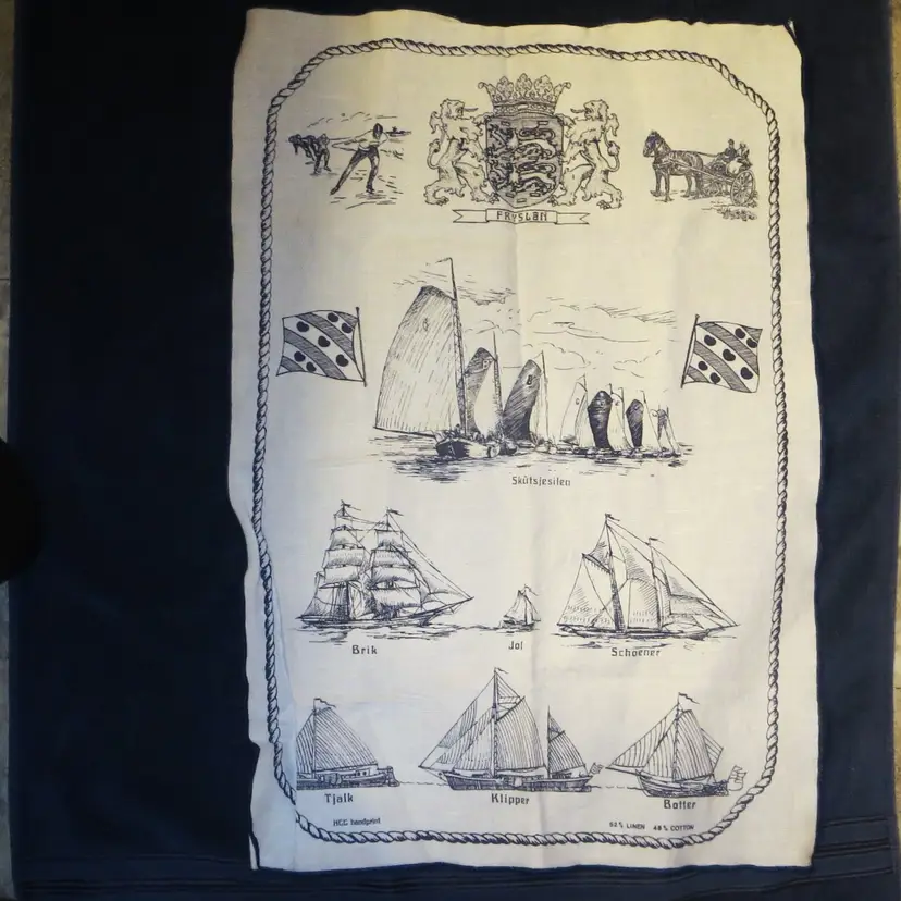 Friesland is a northern province in the Netherlands with a strong maritime identity. This linen towel celebrates that heritage.