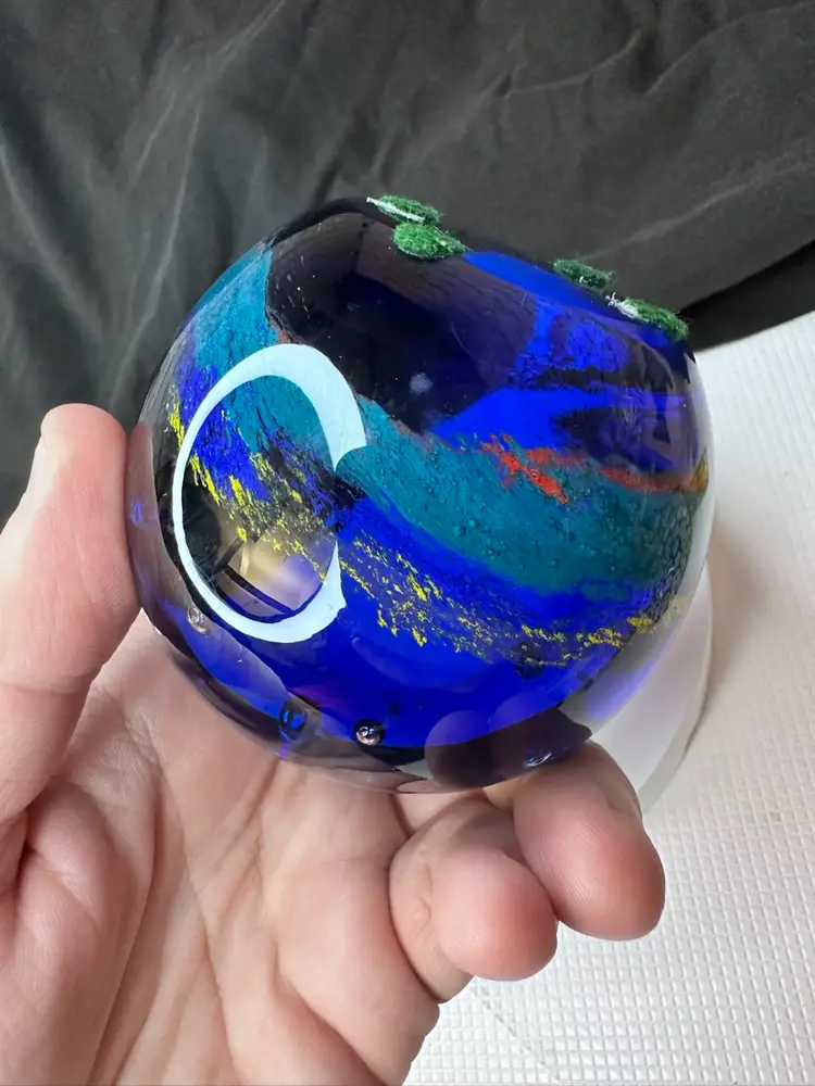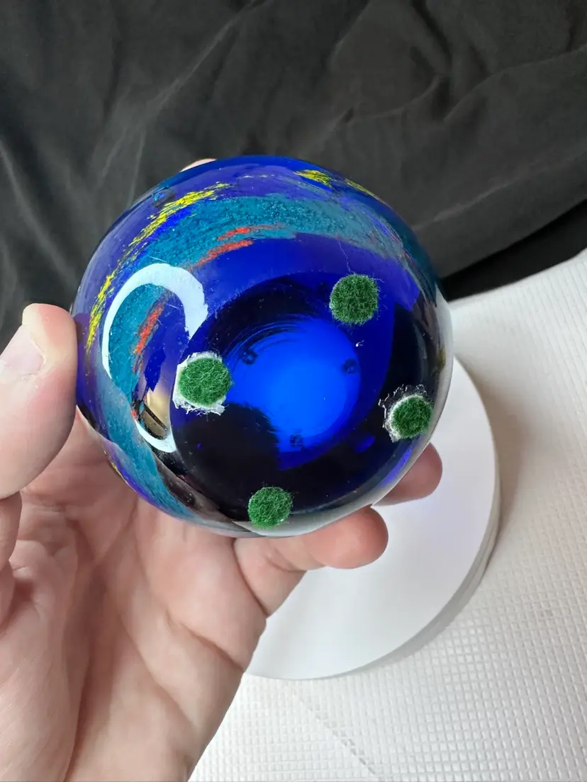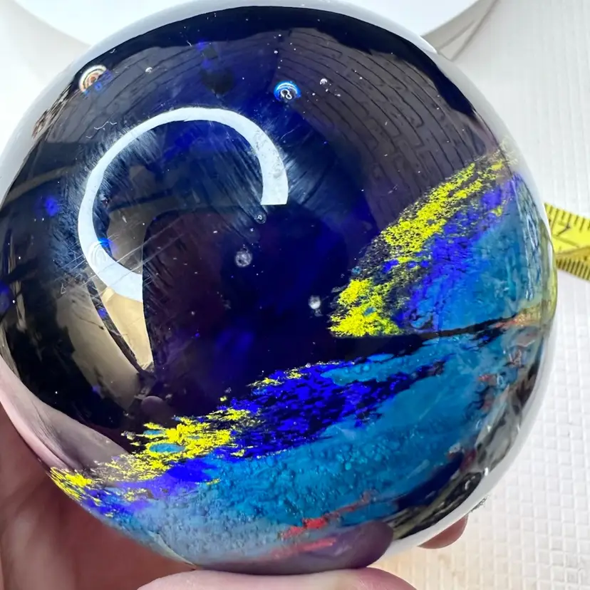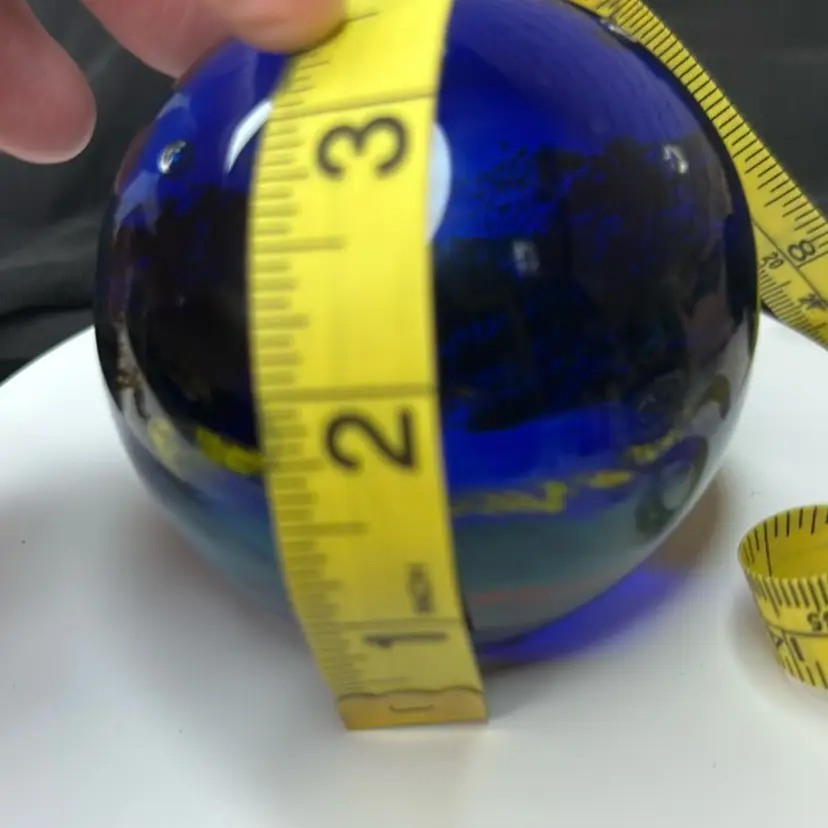 Stunning deep blue glass paperweight with a smooth finish. Perfect for adding a touch of elegance to your desk or shelf. no chipping