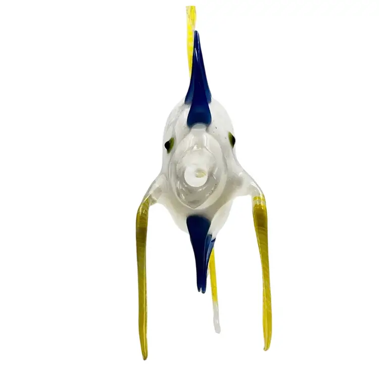 👉Collectors Estate Find 👉 5x2x7” Blown Glass Hollow Blue Yellow White 👉No Chips or Cracks 👉 Review Photos for Best Condition Description 👉 Sold as Shown