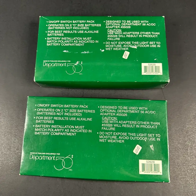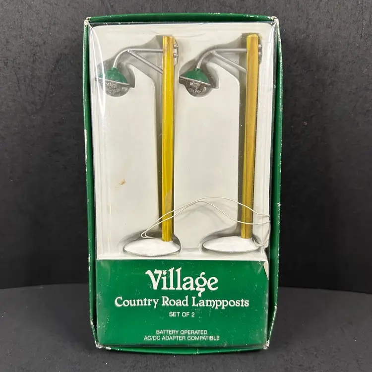 Department 56 2 Sets of 2 Country Road Lamp Post Lights Christmas Snow Village #52628 in good preowned condition. Still in original but weathered packaging. Each lamp post is approximately 5 1/4 inches tall. Please see photos for all the details.