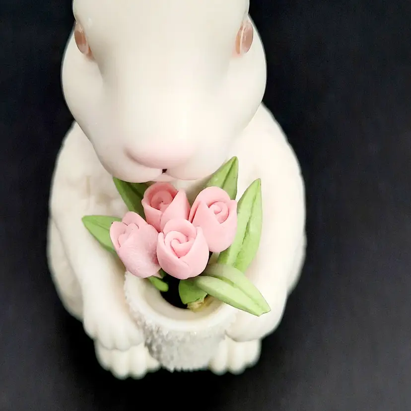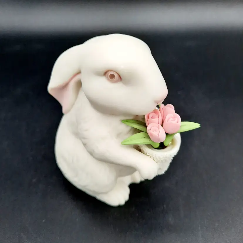 This sweet little bunny is 3"H and in very good condition with a tiny chip to tip of front leaf