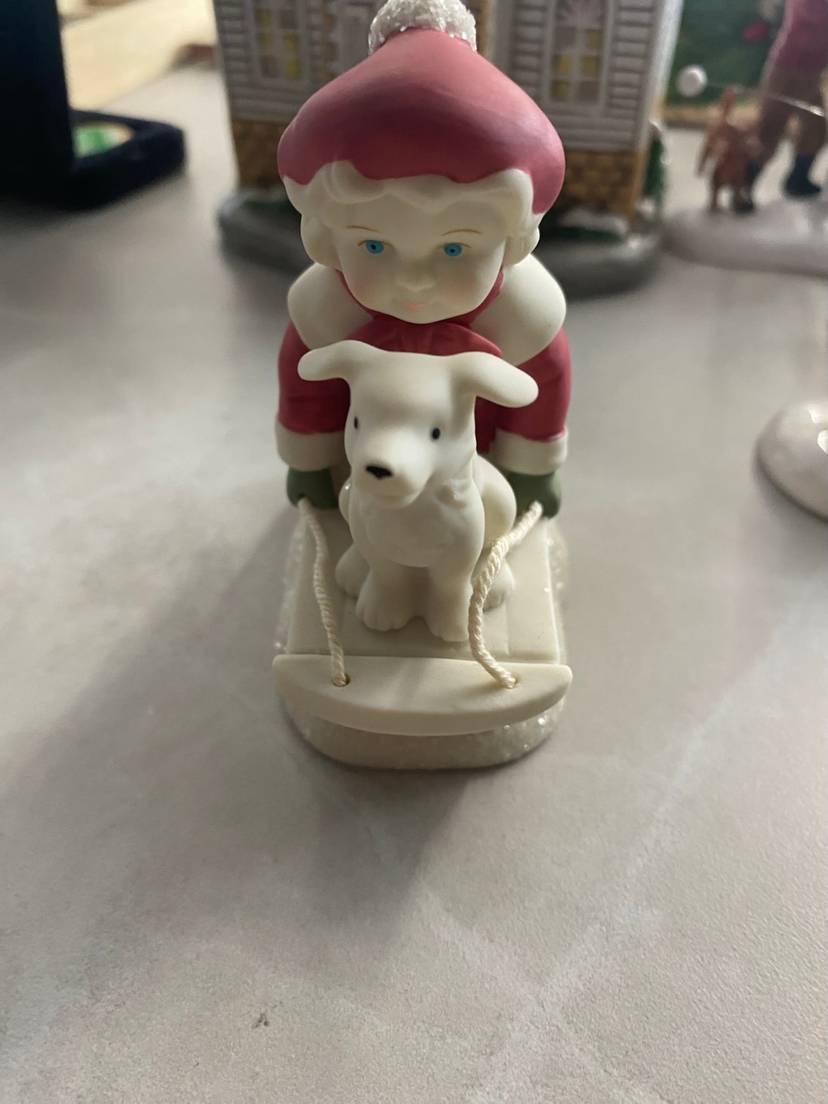 Department 56 simple traditions, Holly Ln. downhill friends figurine, child dog sled