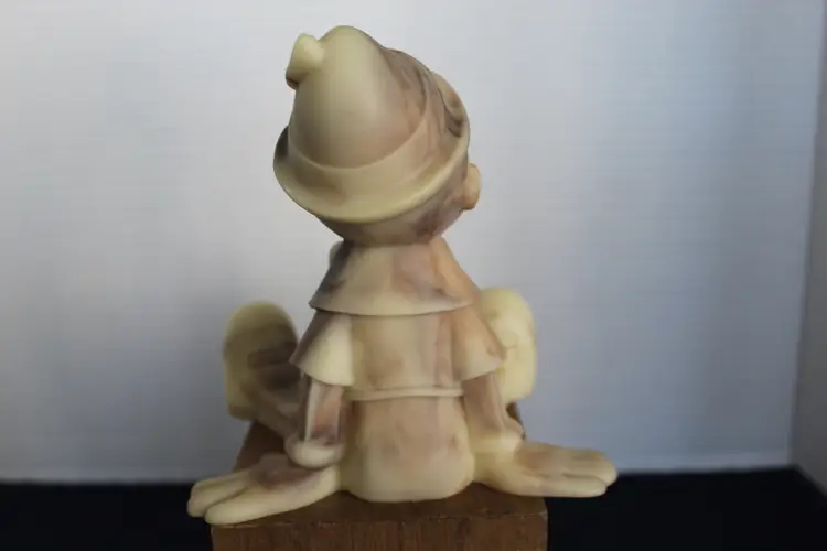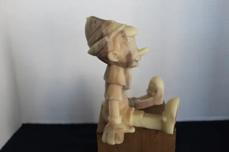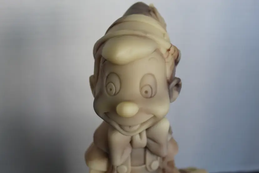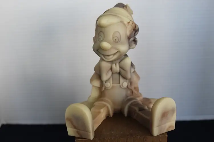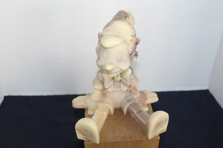 The Disney Pinocchio I'm A Real Boy Marble Figure is a unique collectible figurine from the Disney Traditions collection by Jim Shore for Enesco. It is made of varigated cameonyx marble, measuring 6 inches in height and 5.5 inches in width. Created in 1986 by Walt Disney Company and Stonequarry Cameonyx, this figure captures the essence of the beloved Disney character Pinocchio, showcasing his transformation from a wooden puppet to a real boy. Perfect for any Disneyana collector or fan of the classic story, this marble figure is a charming addition to any collection. Pristine condition. No chips or cracks. Comes from a smoke free home.