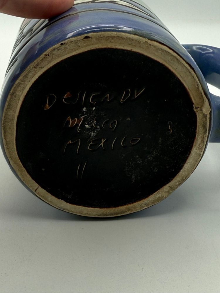 Beautiful hand crafted and hand painted mug signed by Mara Mexico