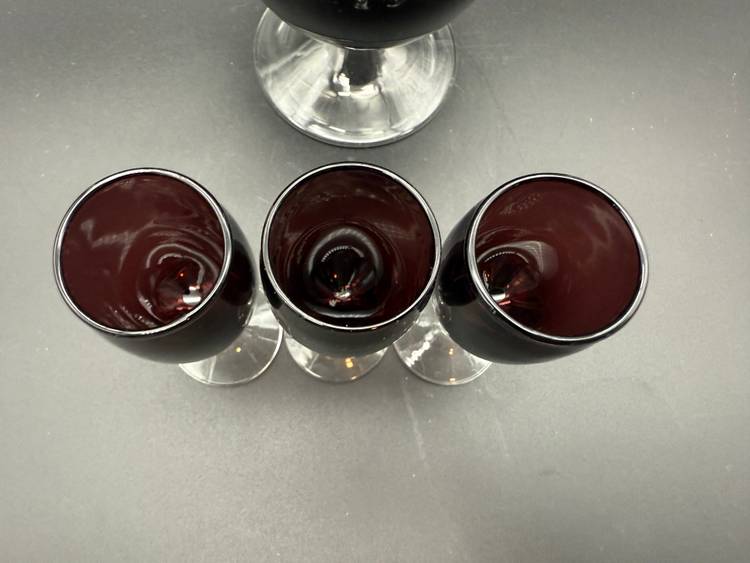 Glasses (each): 1.9 ounces 3.75 inches tall 1.5 inches diameter